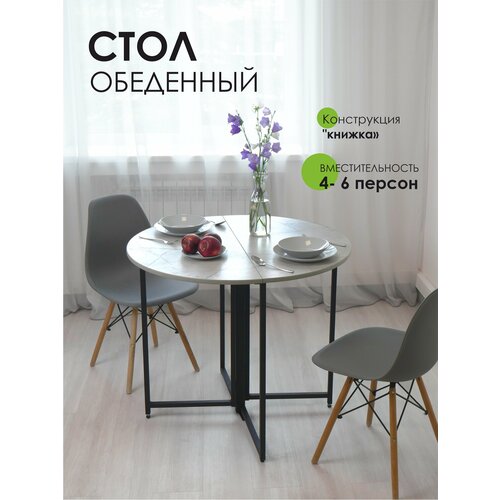 Стол обеденный LAKSI джой раскладной круглый При помощи конструкции «книжка» стол легко сложить до минимальных размеров и убрать в место хранения. В нужный момент разложите стол на всю длину или на половину столешницы. Стол оснащен устойчивыми регулируемыми опорами. Выполнен в трендовых декорах "под камень".