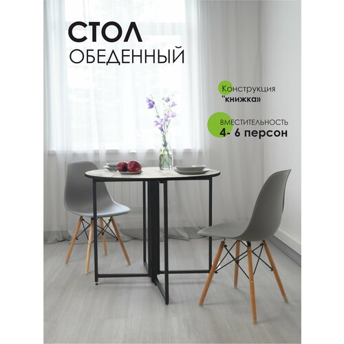 Стол обеденный LAKSI джой раскладной круглый При помощи конструкции «книжка» стол легко сложить до минимальных размеров и убрать в место хранения. В нужный момент разложите стол на всю длину или на половину столешницы. Стол оснащен устойчивыми регулируемыми опорами. Выполнен в трендовых декорах "под камень".