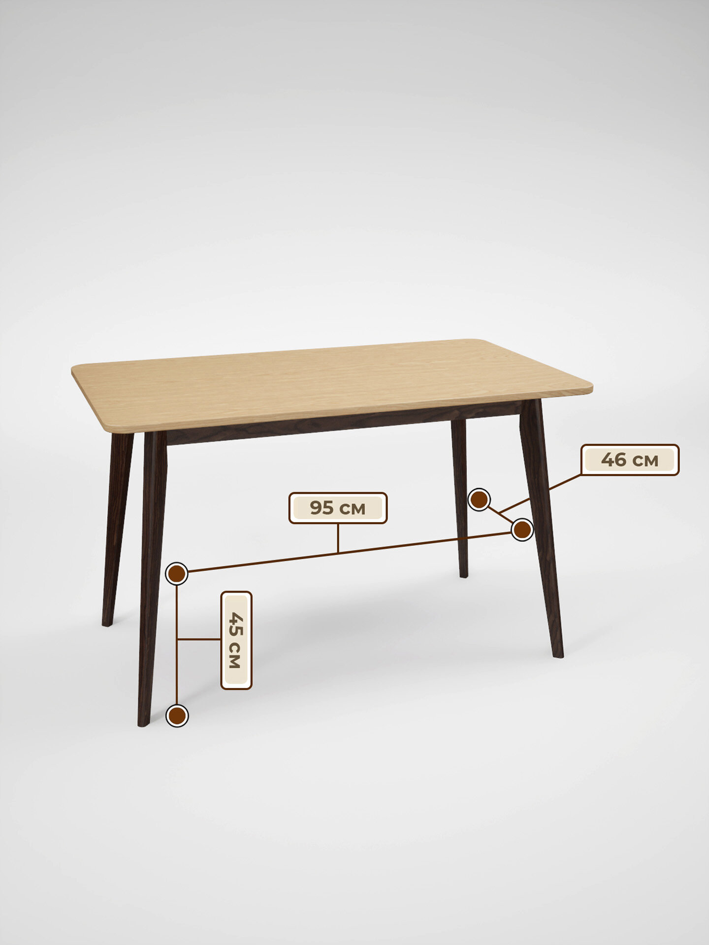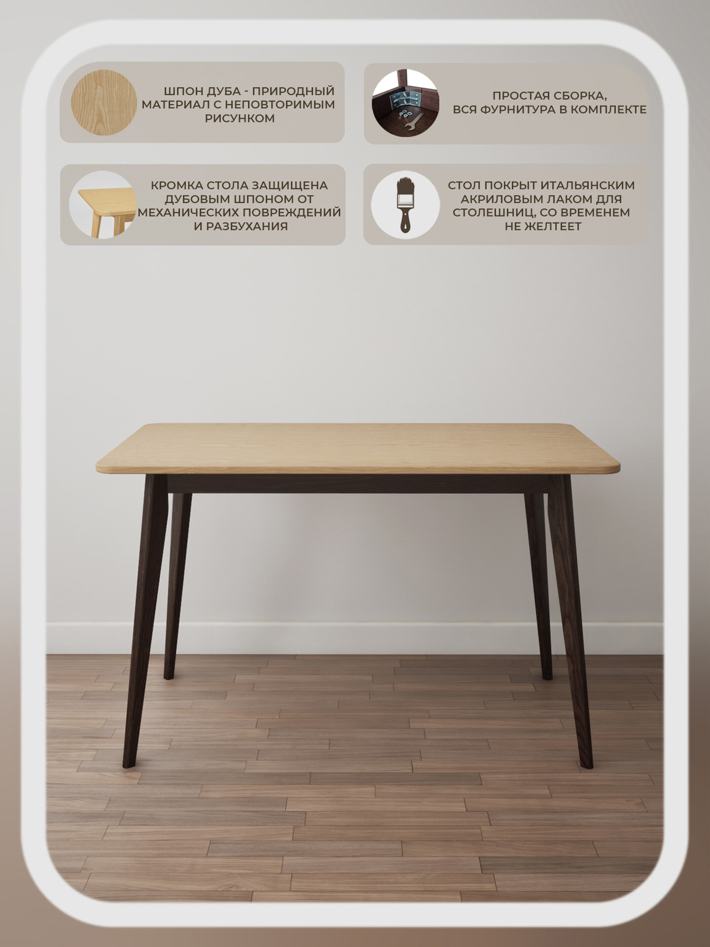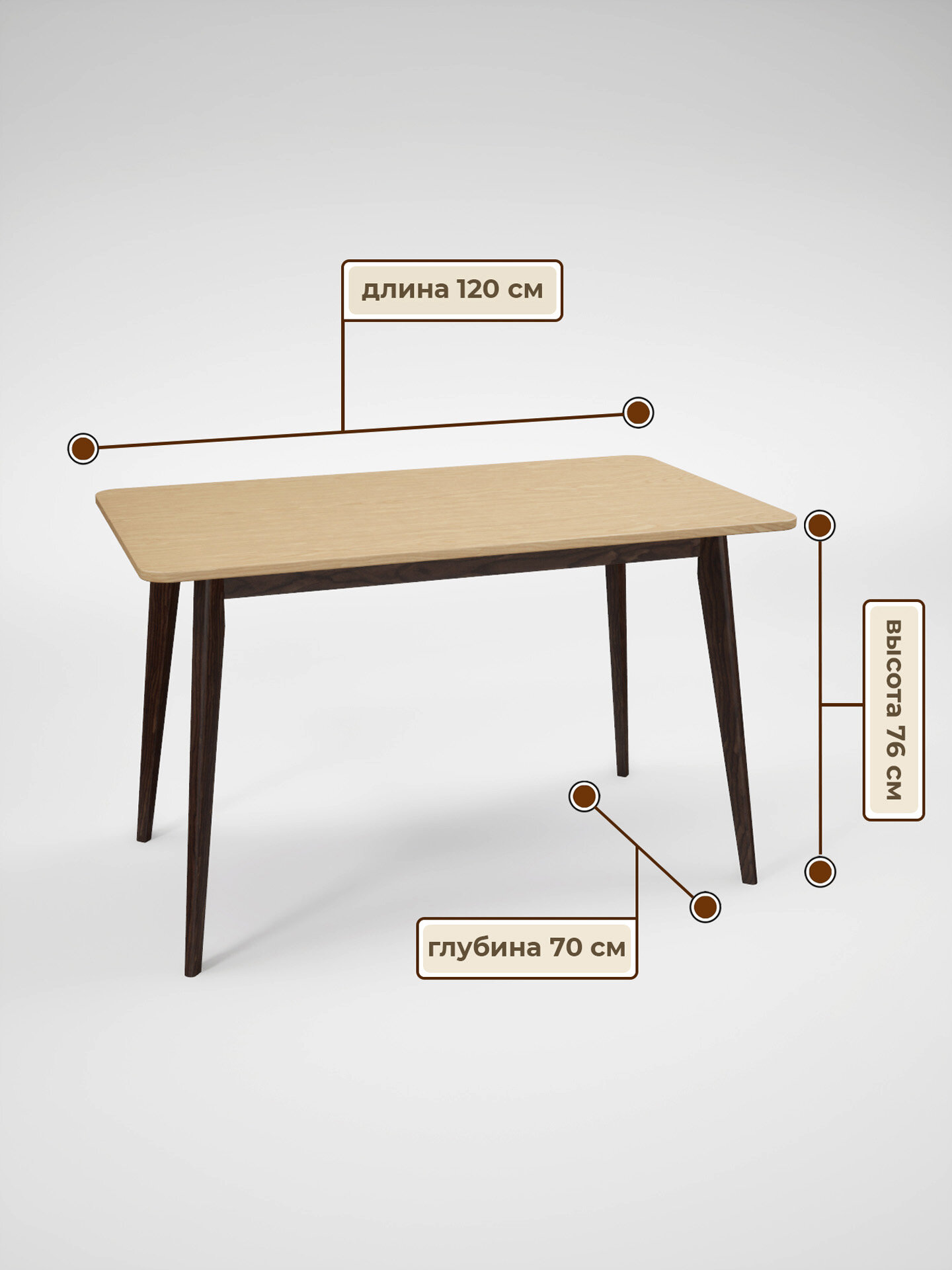 • цвет столешницы - натуральный дуб, цвет ножек стола - тонировка под орех