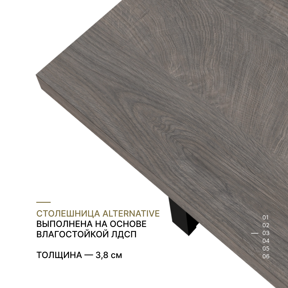 Кромка по периметру стола 1мм приклеена на ПУР клей и обеспечивает дополнительную защиту торцов от влаги.
