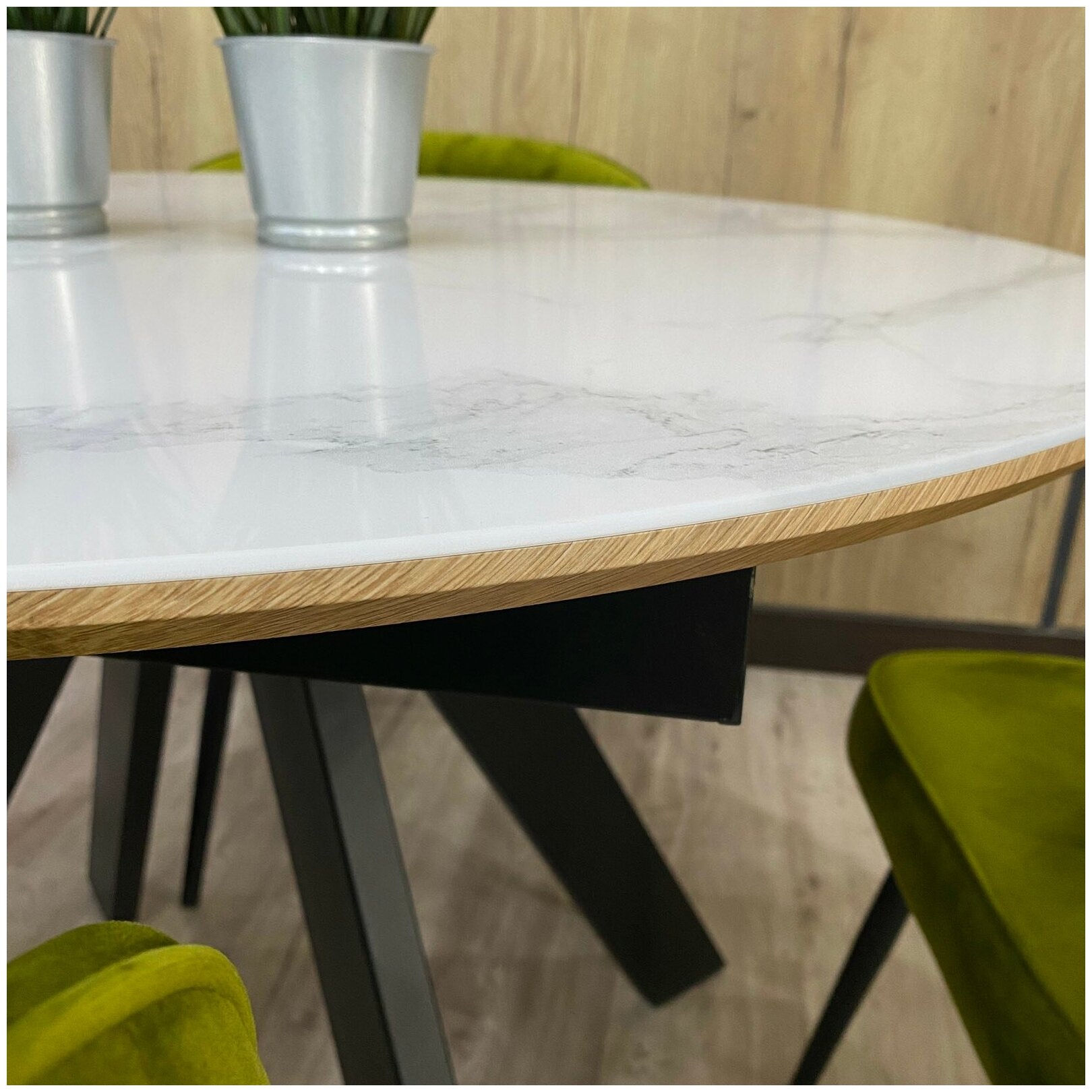 Стол обеденный раскладной Бонжур в стекле, белый мрамор/дуб монтана, 100(140)х100 см: сравнение цен, характеристики, фото, актуальное наличие и цены.