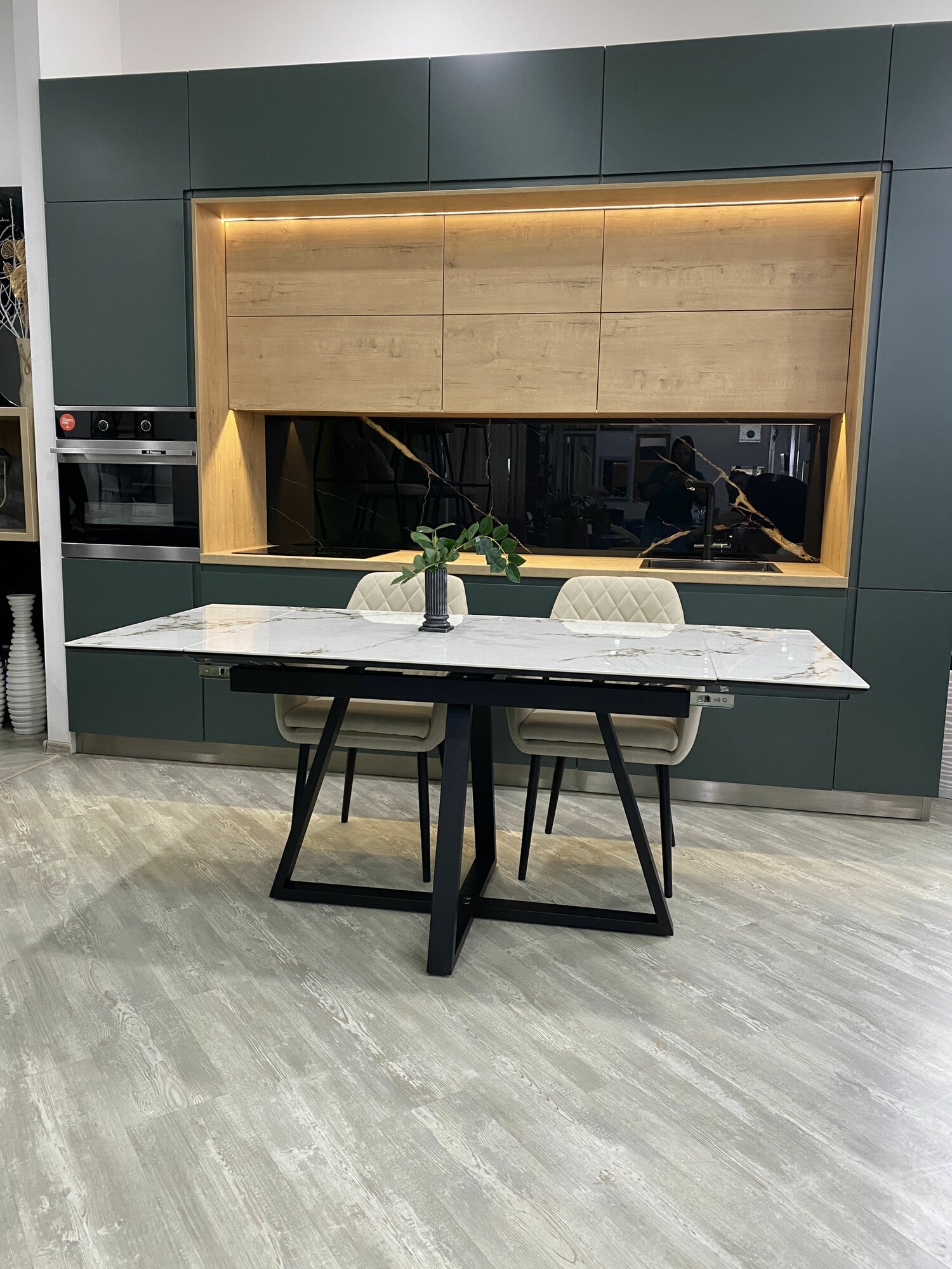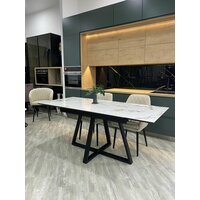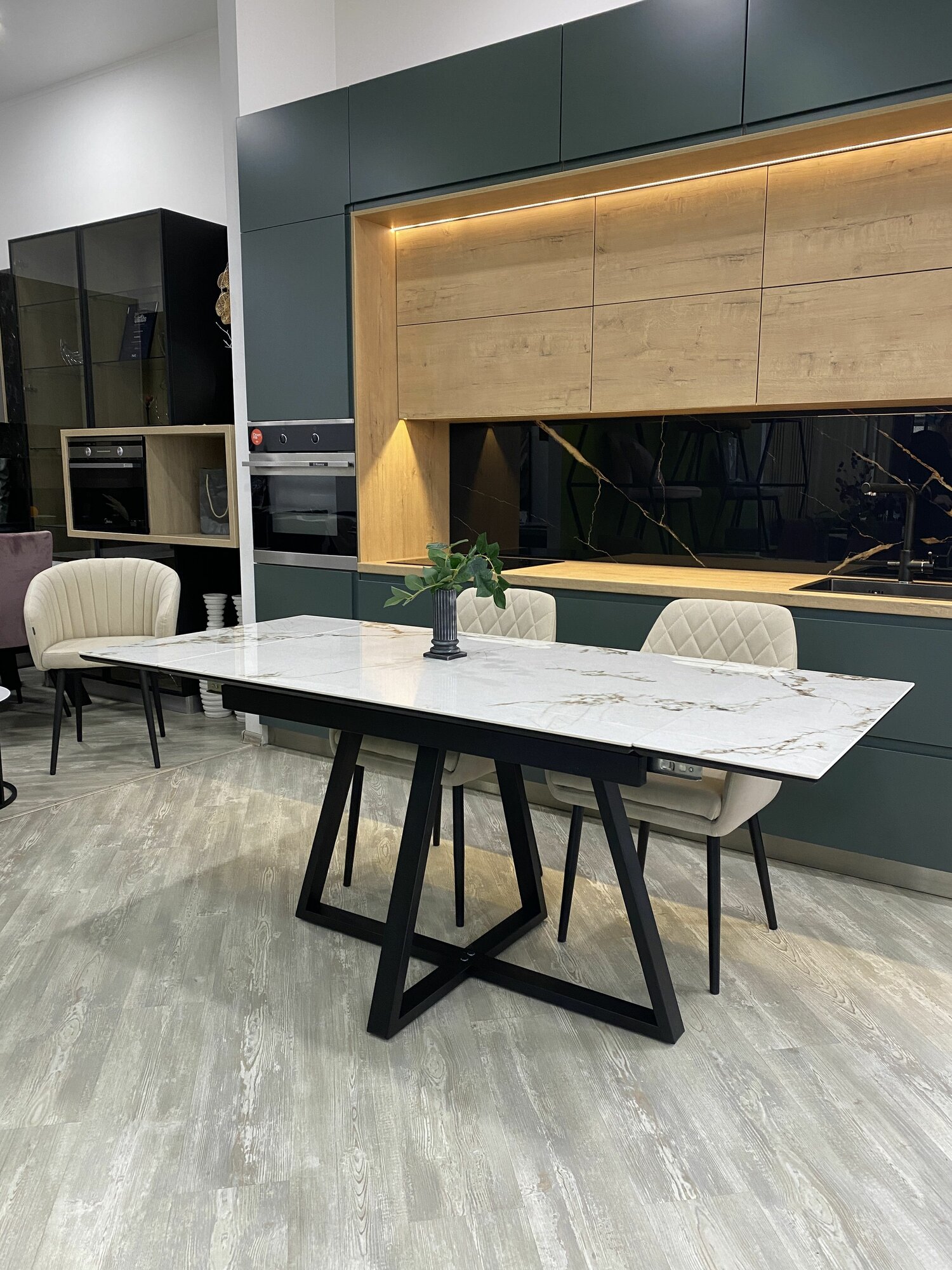 Стол обеденный "Питер" отличное решение, если Вы подбираете стильный и практичный обеденный стол. В сложенном виде это - обеденный стол размером – 120х80 см, в разложенном виде 180 х 80 см. Столешница стола выполнена из из качественного МДФ в пленке, верх столешницы керамика белый мрамор. Механизм раскладки «полуавтомат» уши по 30 см. с каждой стороны. Столешница с раздвижным механизмом в сборе. Металлическое основание кухонного стола- это, прежде всего, практичность. Оно прочное и долговечное, за ним легко ухаживать, его внешний вид даже через многие годы останется неизменным.