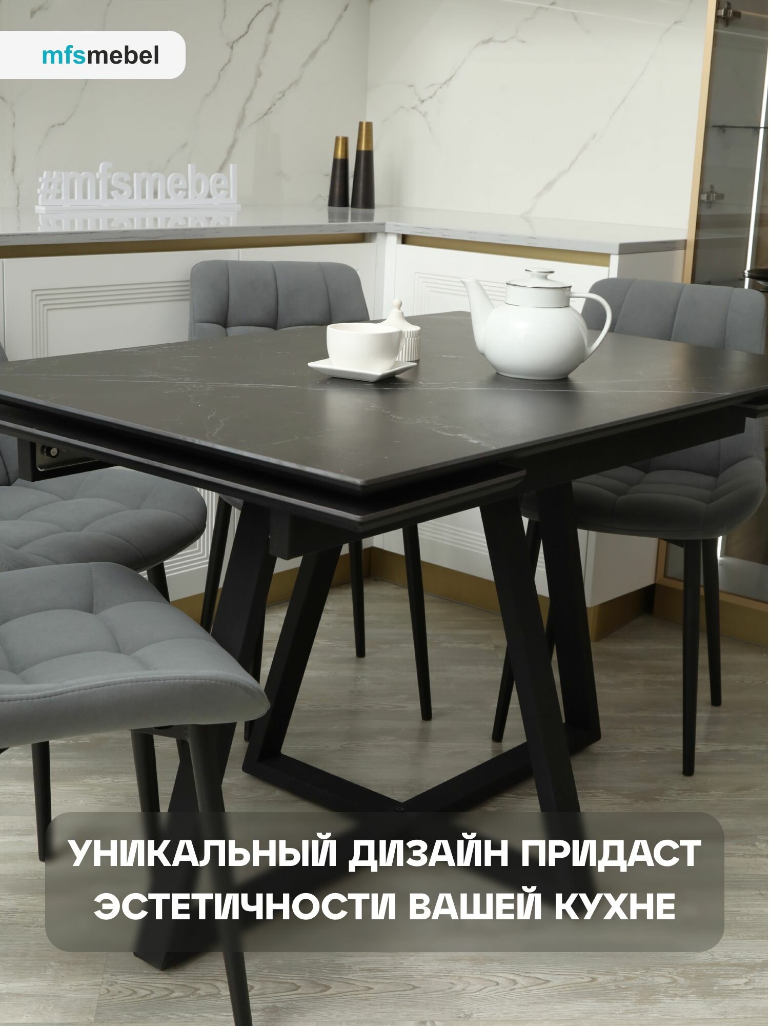 Стол обеденный раскладной Питер в керамике Черный мрамор гармонично сочетает в себе элегантность и функциональность, что делает его идеальным дополнением для любого интерьера, будь то современная кухня или стильная столовая. Несмотря на свои компактные размеры в сложенном виде, этот стол обеденный легко трансформируется в просторное место для приема гостей благодаря удобной раздвижной системе. Сочетание прочной керамической столешницы и устойчивого металлического каркаса обеспечивает долговечность и надежность конструкции. Черный мраморный узор на поверхности придает столу изысканный вид, делая его центральным элементом вашего интерьера. Этот кухонный обеденный стол не только практичен, но и прост в уходе: керамика устойчива к царапинам, пятнам и воздействию высоких температур, что особенно важно в условиях активного использования. Кроме того, его круглая форма способствует более комфортному размещению гостей, создавая атмосферу близости и уюта. Если вам нужно быстро адаптировать пространство для различных событий, стол трансформер обеденный станет незаменимым помощником. Вариативность использования данной мебели позволяет не ограничивать себя в планировке комнаты: он легко превращается из компактного столика в полноценный обеденный стол, способный разместить всю семью и гостей. Эта модель также идеально подходит для тех, кто ценит сочетание стиля и удобства, создавая гармонию и баланс в доме. Выбирая стол обеденный кухонный Питер, вы получаете не только эстетически привлекательный элемент интерьера, но и многофункциональное, надежное решение для вашего дома.