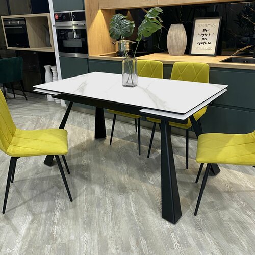 Стол обеденный "Стоун" отличное решение, если Вы подбираете стильный и практичный обеденный стол. В сложенном виде это - обеденный стол размером – 140х80 см, в разложенном виде 200 х 80 см. Столешница стола выполнена из из качественного МДФ в пленке, верх столешницы керамика белый мрамор. Механизм раскладки «полуавтомат» уши по 30 см. с каждой стороны. Столешница с раздвижным механизмом в сборе. Опоры на вид как-будто, сложенные на манер «Оригами» из стального листа, немного зауженные по форме, что делает их изящными и легкими по восприятию, хоть и изготовленные из металла. Металлическое основание кухонного стола- это, прежде всего, практичность. Оно прочное и долговечное, за ним легко ухаживать, его внешний вид даже через многие годы останется неизменным.