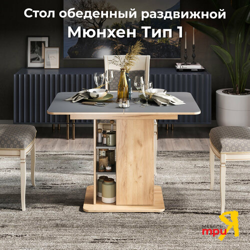 Функциональный и минималистичный раздвижной обеденный стол Мюнхен - стойкая конструкция, разнообразие расцветок, доступная цена модели позволит вам выбрать идеальное обеденное место, которое впишется в любой интерьер гостиной или кухни. Представленные текстуры являются современным решением оформления кухонного стола. Опора оборудована полками и ящиком, что дает дополнительные места для хранения. Качественные материалы делают стол для кухни износостойким, способным прослужить многие годы - используется высококачественный безопасный ЛДСП и стекло с рисунком. Размеры: высота - 75, 5 см, длина 110, 4 см, длина в разложенном виде - 149,4 см, ширина 70,2 см, механизм раздвижения - синхронный раздвижной с цельной вставкой (укладывается вручную). Разместит за собой 6-8 человек.
