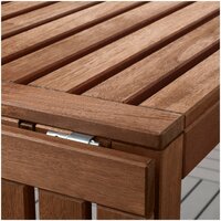 Этот садовый стол изготовлен из прочной древесины акации, которая отличается высокой устойчивостью к воздействию окружающей среды. Благодаря использованию качественного материала, этот деревянный стол прослужит вам долгие годы, сохраняя свой первоначальный вид даже при частом использовании под открытым небом.