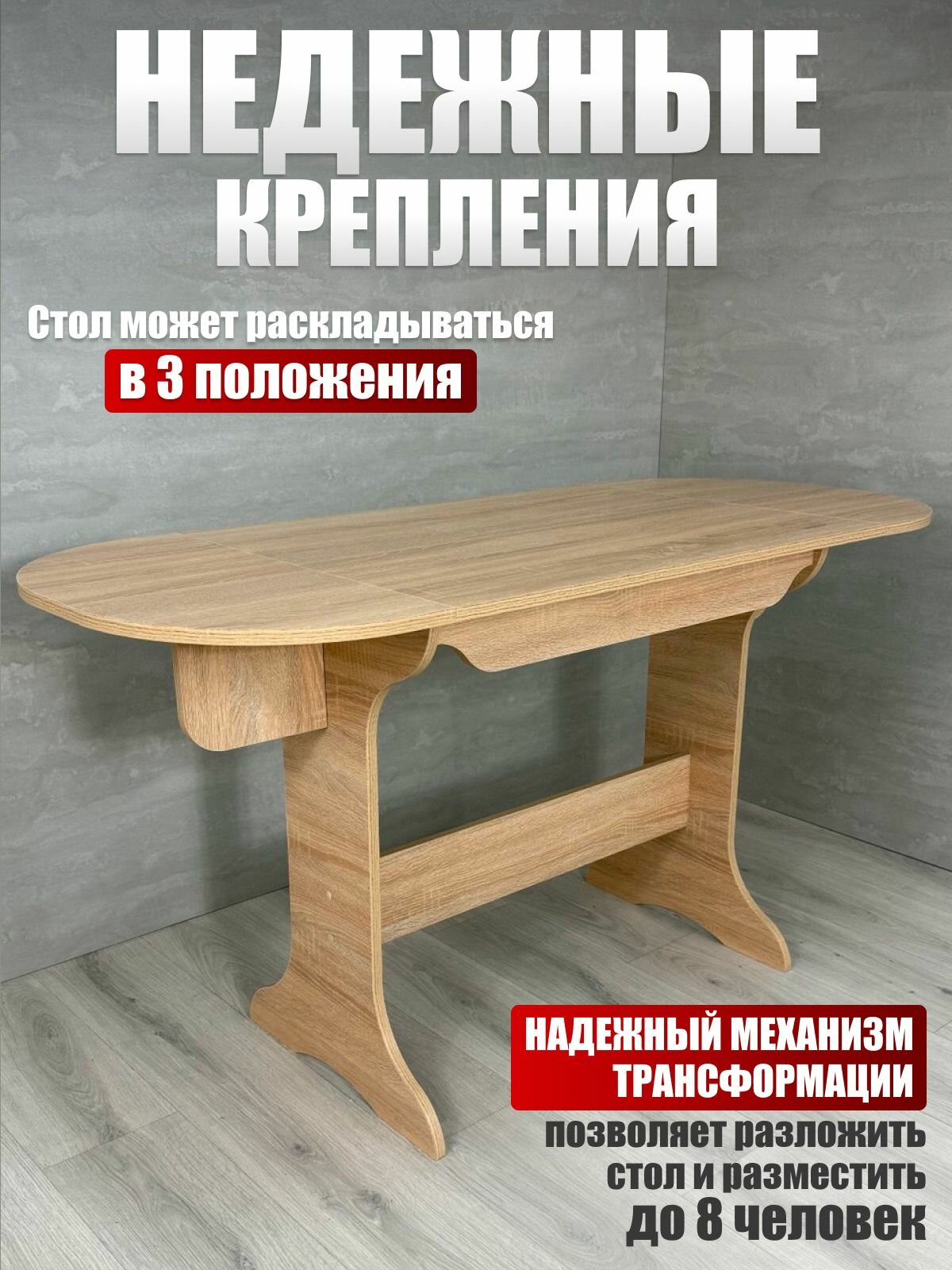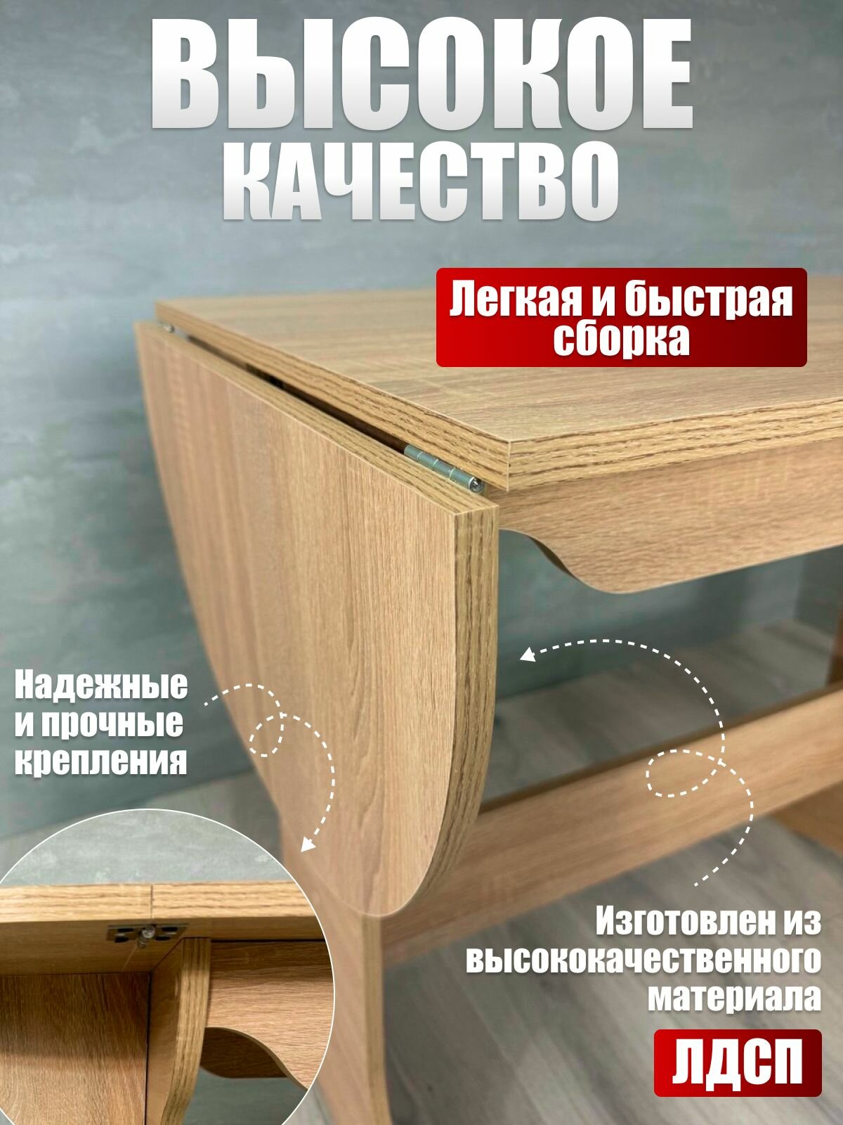 Благодаря качественной отделке, стол легко очищается и не требует особого ухода. Он не только отличается стильным внешним видом, но и практичностью, что делает его любимым предметом в домашнем обиходе. Это идеальное решение для тех, кто ищет функциональный и красивый предмет мебели для своей кухни.