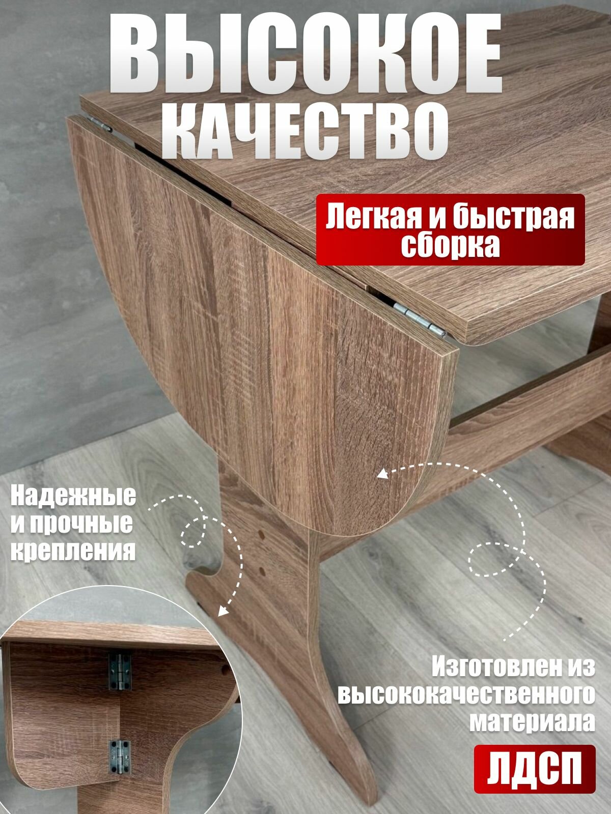 Благодаря качественной отделке, стол легко очищается и не требует особого ухода. Он не только отличается стильным внешним видом, но и практичностью, что делает его любимым предметом в домашнем обиходе. Это идеальное решение для тех, кто ищет функциональный и красивый предмет мебели для своей кухни.