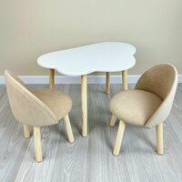 Стол детский Облако белый + 2 мягких Стула бежевые от DimDomKids, ножки из дерева: сравнение цен, характеристики, фото, актуальное наличие и цены.