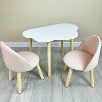 Стол детский Облако белый + 2 мягких Стула розовые от DimDomKids, ножки из дерева: сравнение цен, характеристики, фото, актуальное наличие и цены.