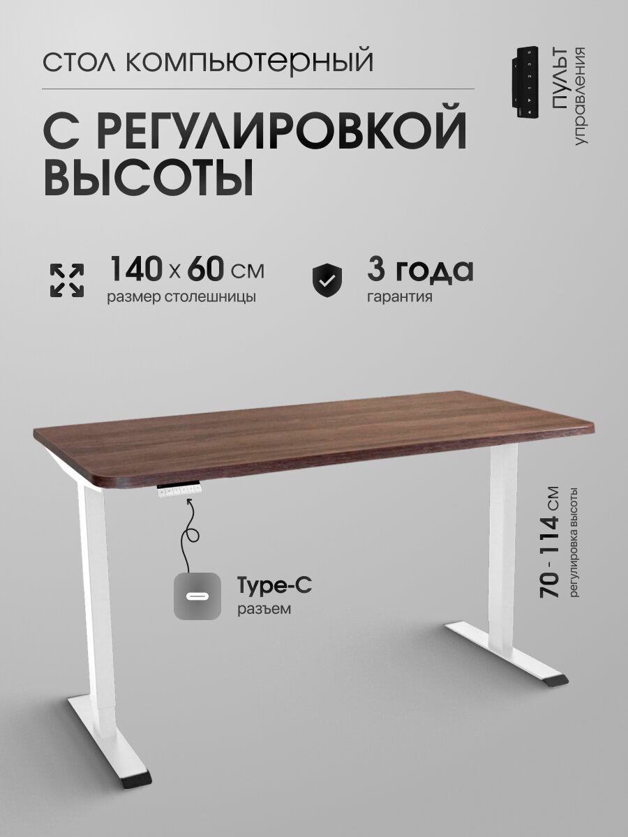 Стол офисный подъемный LuxAlto, столешница ЛДСП 140х60 см Дуб коричневый, Белое подстолье SRF2J: сравнение цен, характеристики, фото, актуальное наличие и цены.