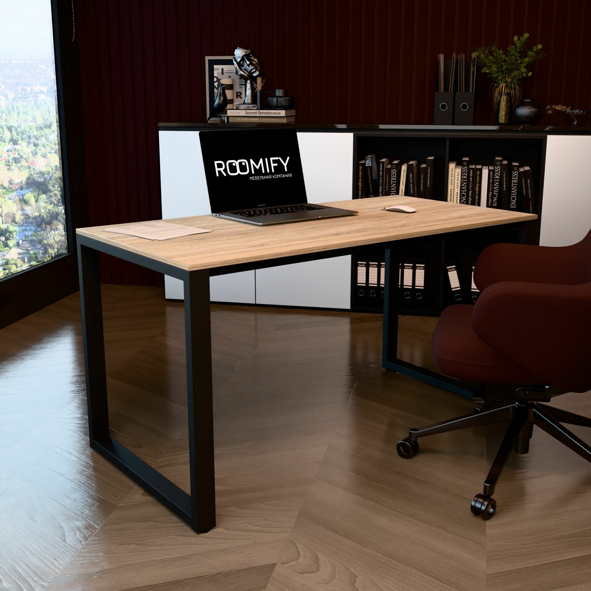 Стол офисный ROOMIFY BIMER, ЛДСП, цвет дуб Сонома/черный муар, 120×70х75 см: сравнение цен, характеристики, фото, актуальное наличие и цены.