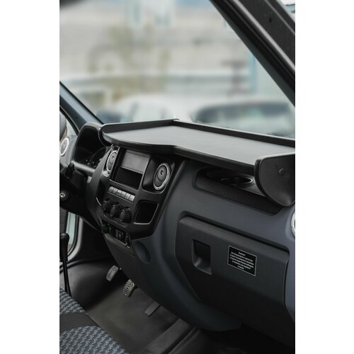 Стол парта на всю панель для а/м Газель Бизнес с панелью Next перфорированная серая экокожа