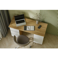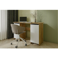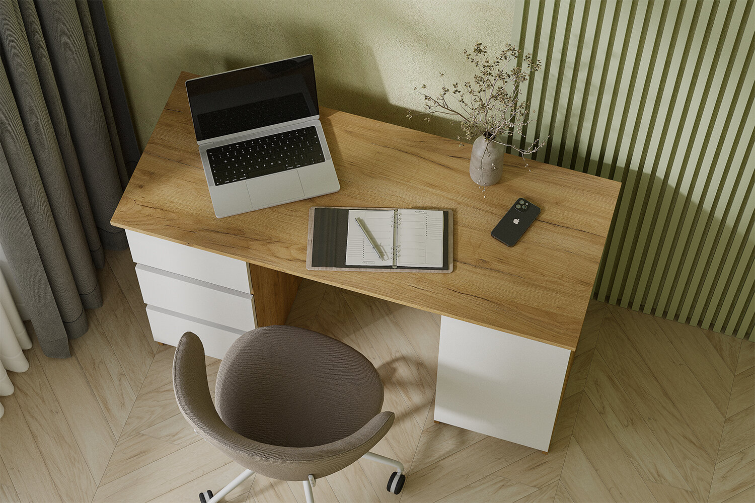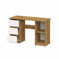 Элегантный и функциональный письменный стол с просторной рабочей поверхностью станет идеальным решением для вашего офиса или домашнего кабинета. Изготовленный из высококачественного ЛДСП, он сочетает в себе стильный дизайн и практичность. Цветовое сочетание дуба золотого и белого шагреня придает столу современный и утонченный вид, который легко впишется в любой интерьер. Стол оснащен тремя вместительными выдвижными ящиками с роликовыми направляющими, которые обеспечивают плавное и бесшумное открытие, а также откидной дверкой с полкой для хранения всех необходимых предметов. Максимальная нагрузка на полки составляет 20 кг, а на ящики — 5 кг, что позволяет разместить все необходимое для продуктивной работы. Универсальная сборка и скрытая фурнитура делают этот стол идеальным выбором для тех, кто ценит качество и стиль.