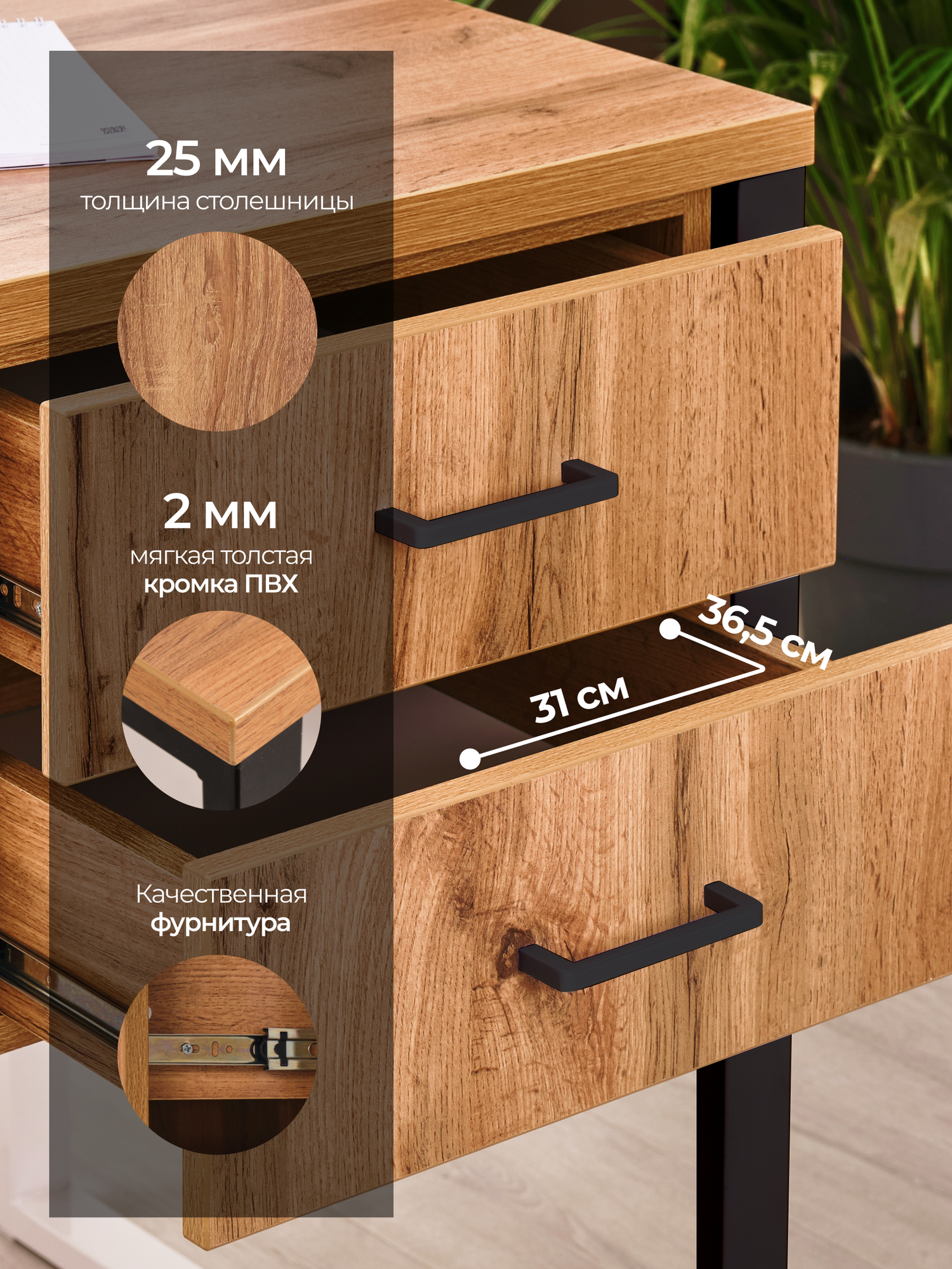 с тумбой, с ящиком для хранения, Прямой, Стол, подвесная тумба с двумя ящиками, с задней стенкой