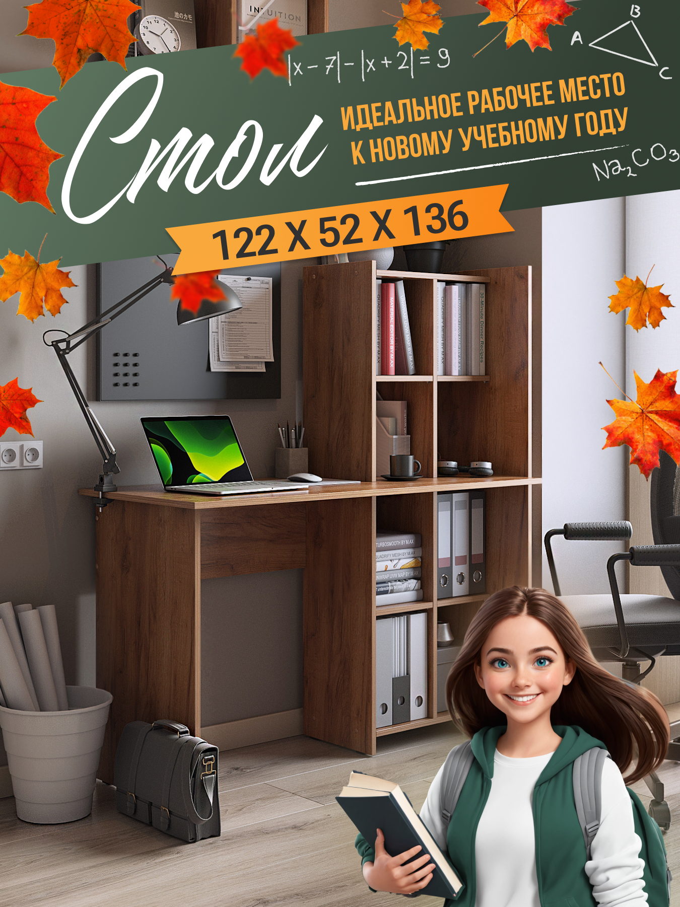 Стол письменный Vif «Эдем-1» дуб крафт табачный с надстройкой, 1218х522х1358 мм.: сравнение цен, характеристики, фото, актуальное наличие и цены.