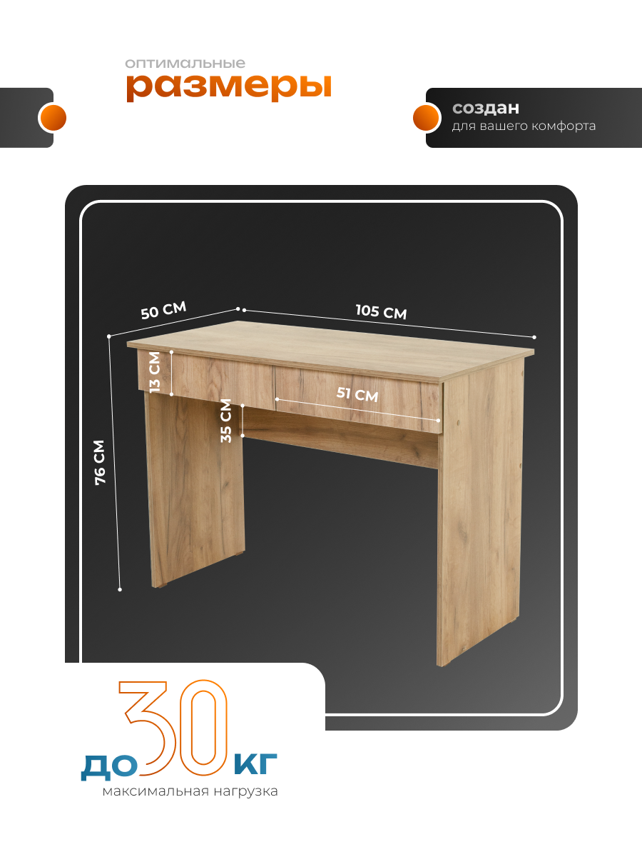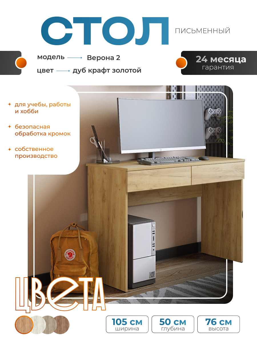 Стол письменный Акрона «Верона-2» дуб крафт золотой с ящиками, 1050х496х755 мм.: сравнение цен, характеристики, фото, актуальное наличие и цены.