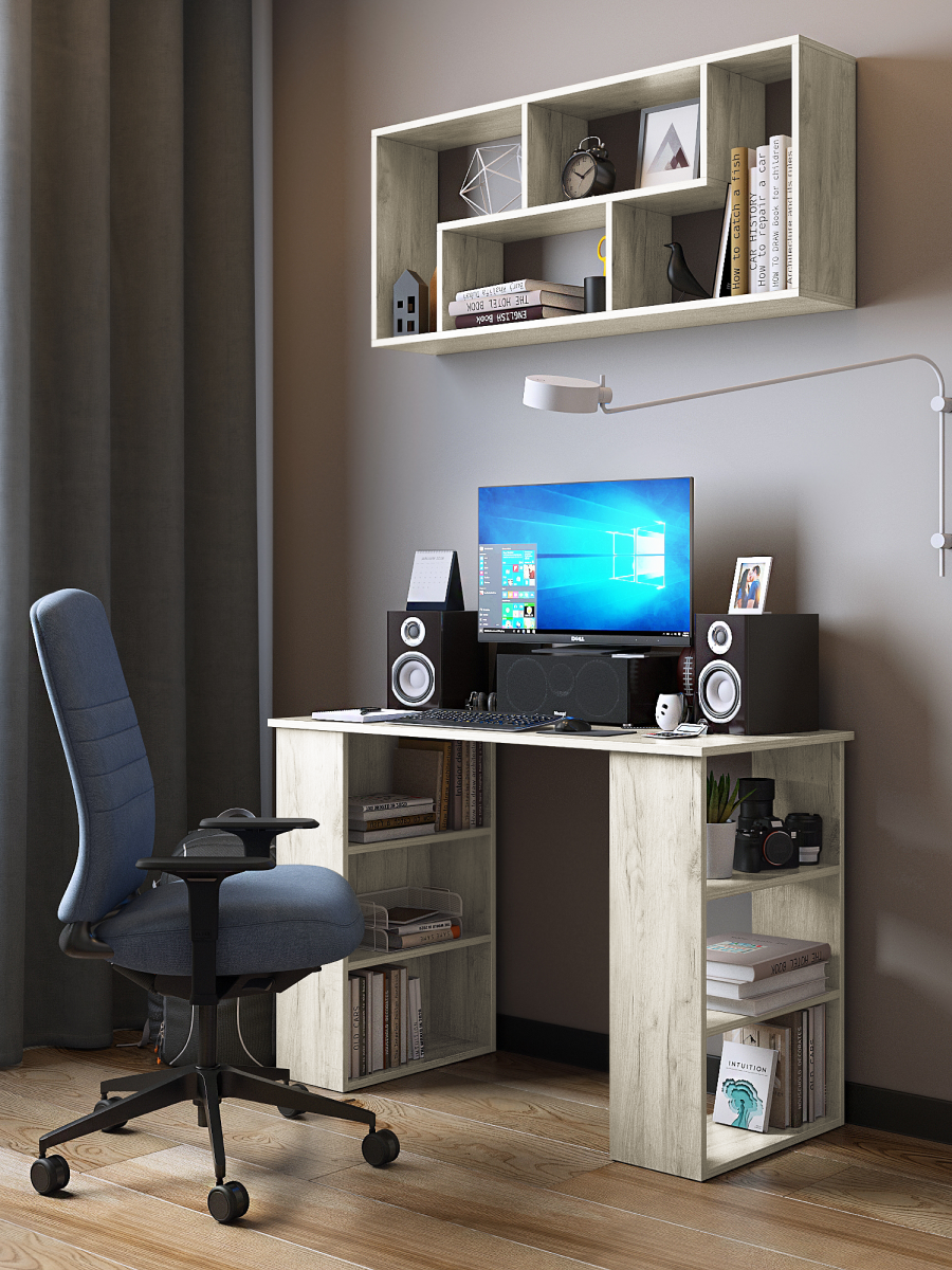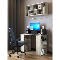Купить Стол письменный Акрона «Верона» дуб крафт белый с полками, 1100х500х750 мм. с доставкой по всей России.