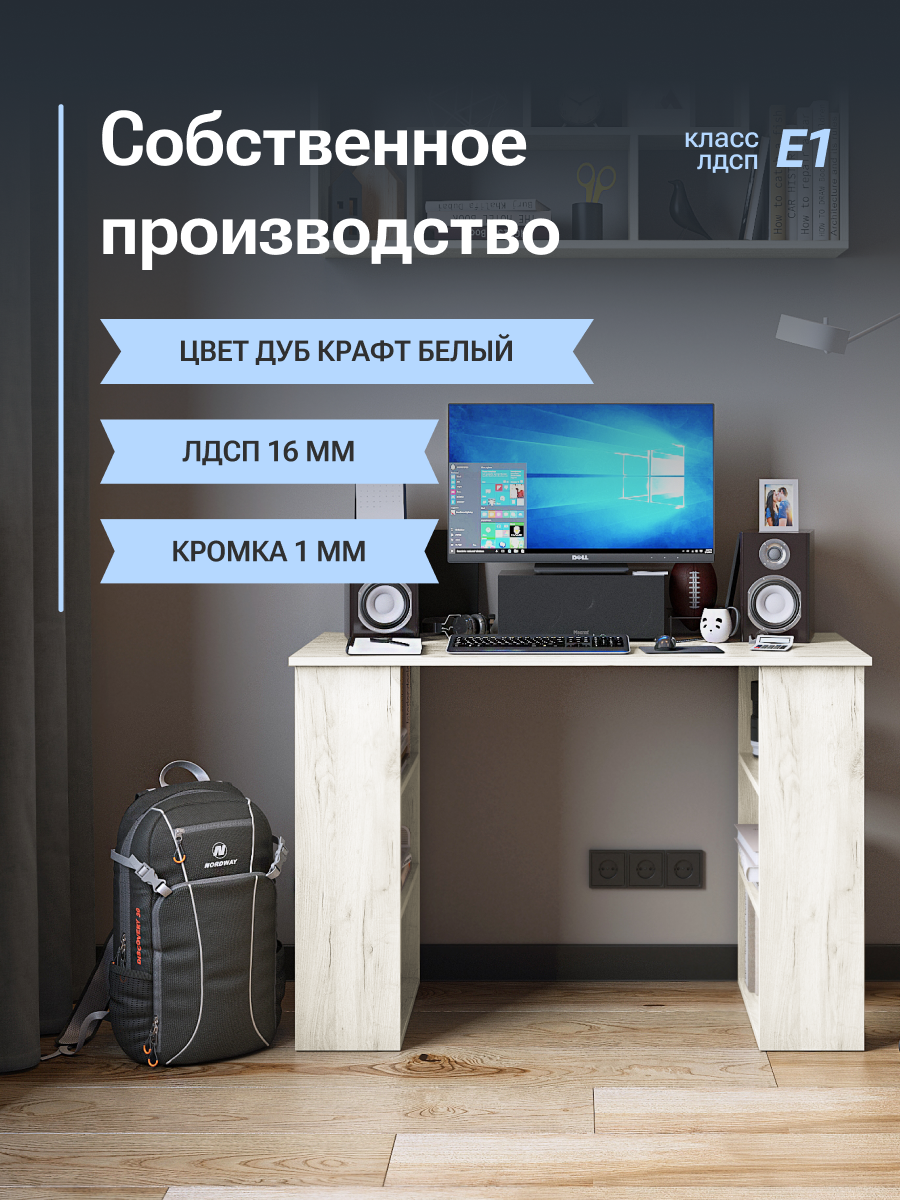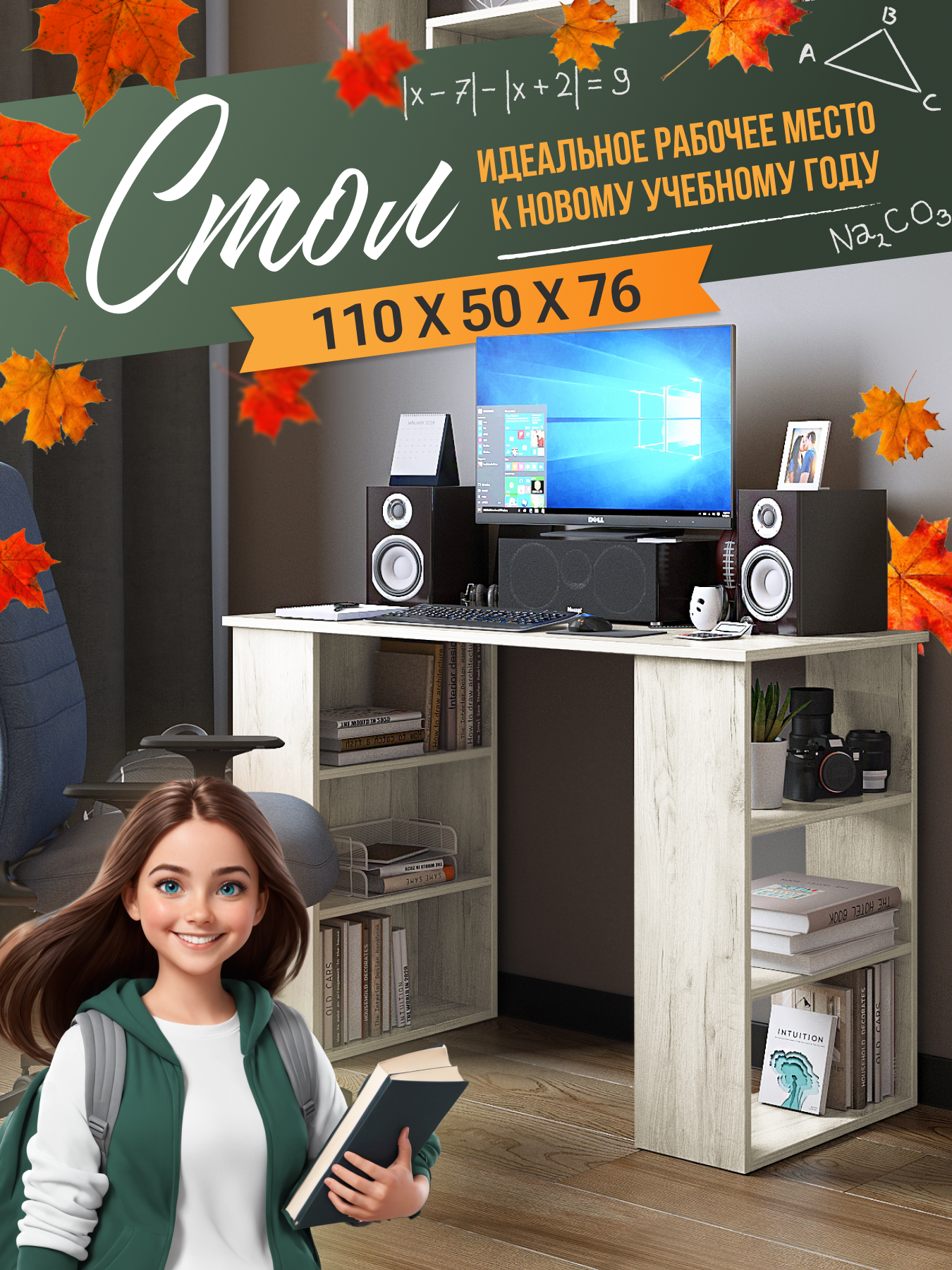 Стол письменный Акрона «Верона» дуб крафт белый с полками, 1100х500х750 мм.: сравнение цен, характеристики, фото, актуальное наличие и цены.