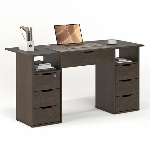 Стол письменный БАНГА-73-Я венге выполнен в стильном и современном дизайне, который будет гармонично смотреться в любом интерьере. Цвет венге придает изделию особую изысканность и элегантность.