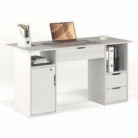 Стол оснащен двумя тумбами с ящиками и дверкой, а также ящиком под столешницей и полками для документов. Такая организация пространства позволяет удобно хранить все необходимые вещи и документы, а также обеспечивает быстрый доступ к ним.