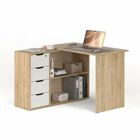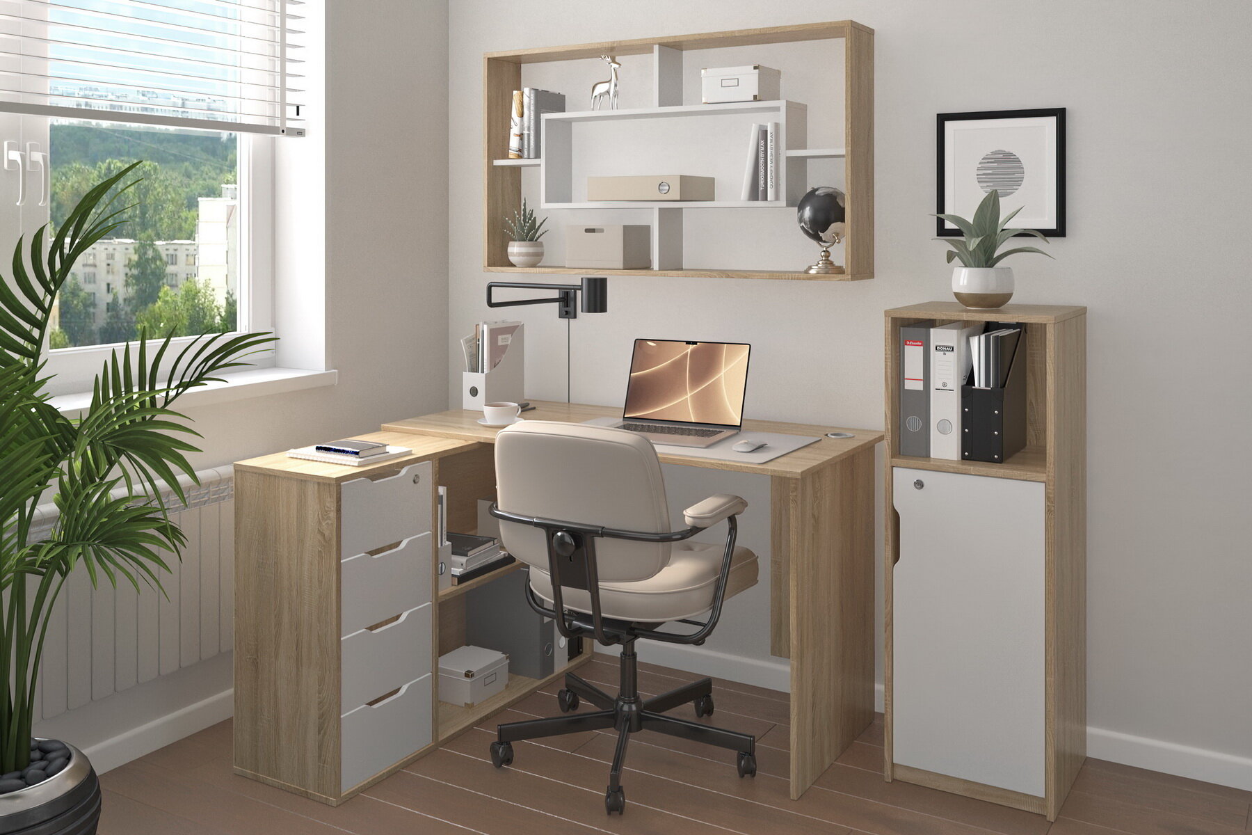 Стол письменный БАНГА-93 левый дуб сонома-белый - это функциональный и стильный выбор для вашего рабочего пространства. Изготовленный из качественного ЛДСП, этот стол обеспечит долговечность и надежность в использовании.