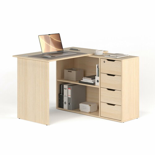 Стол письменный БАНГА-93 правый дуб молочный - это функциональный и стильный элемент интерьера, который станет незаменимым помощником в организации рабочего пространства.
