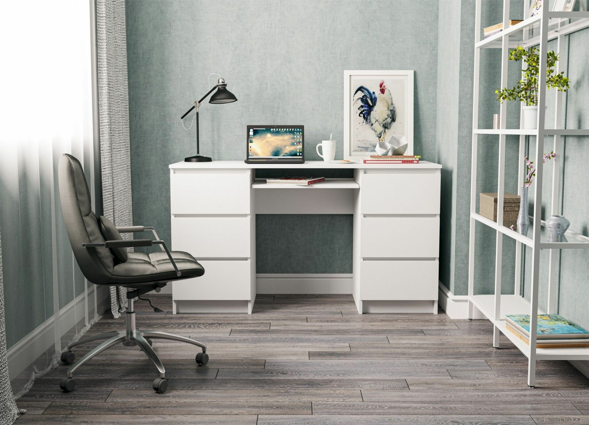 Удобная высота стола Челси способствует правильному положению тела, что сохраняет вашу осанку. Большая столешница позволяет разместить на ней все необходимое, в том числе и офисную технику, а в удобные большие ящики можно положить все необходимое для работы, учебы.