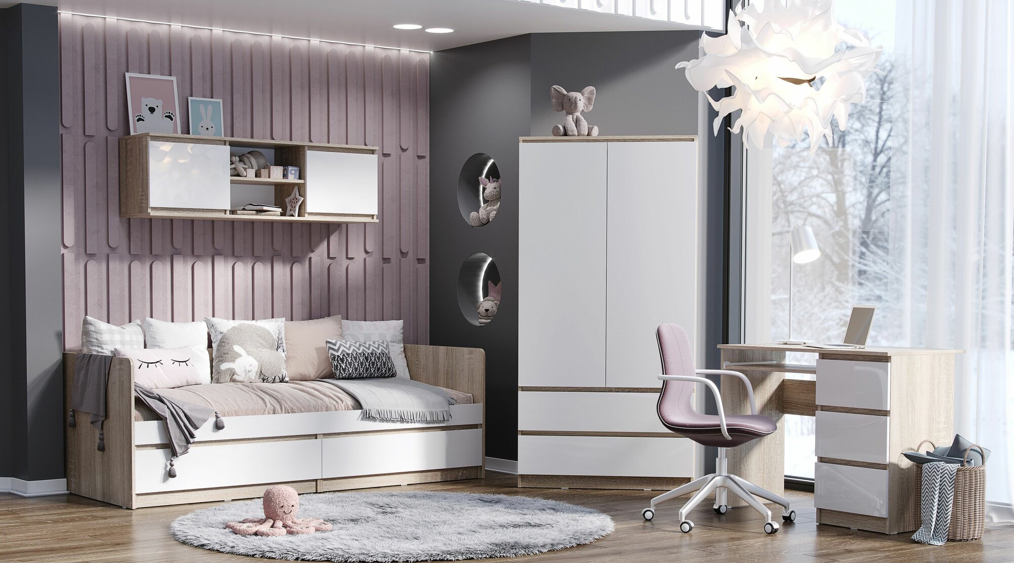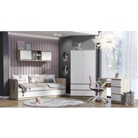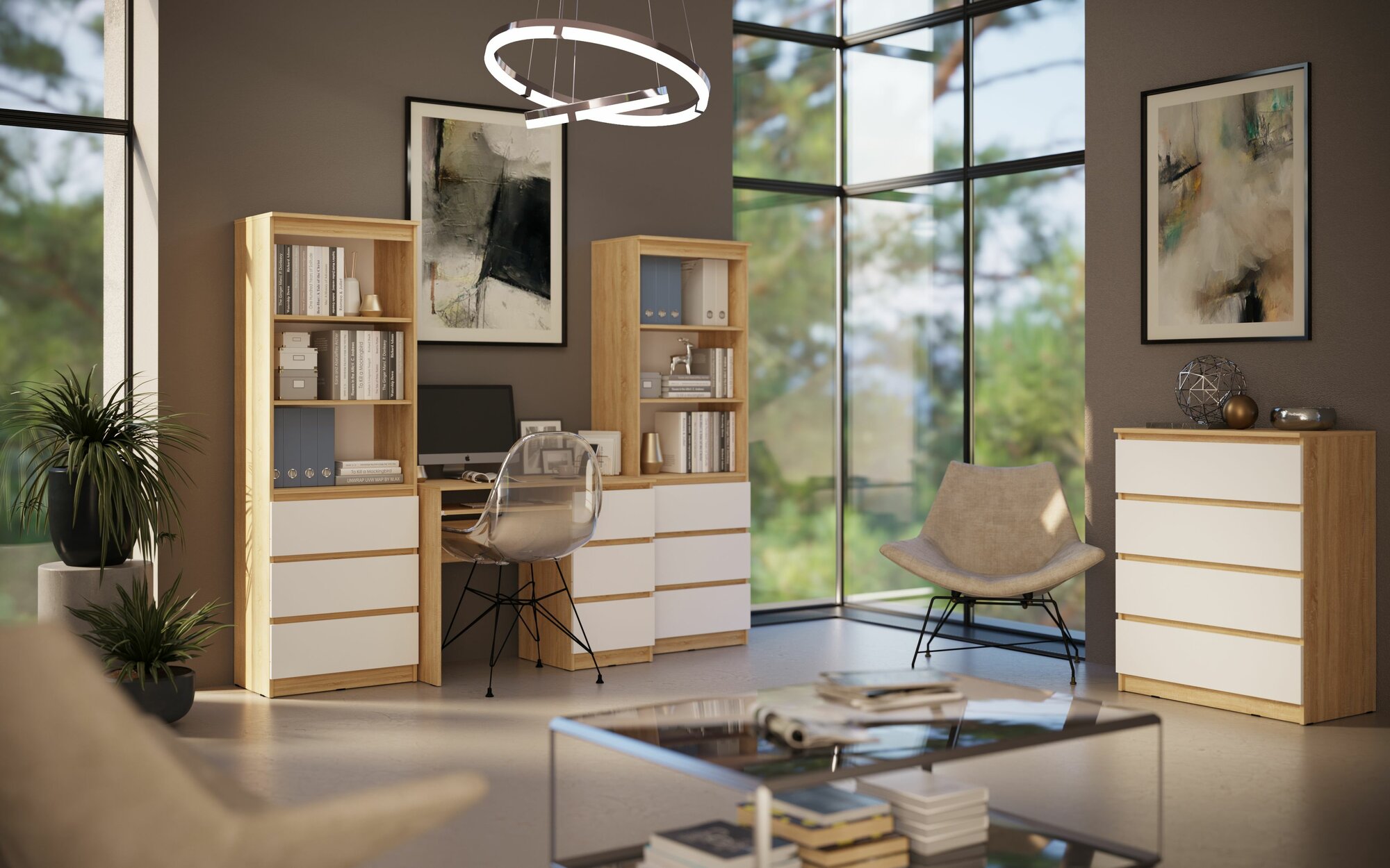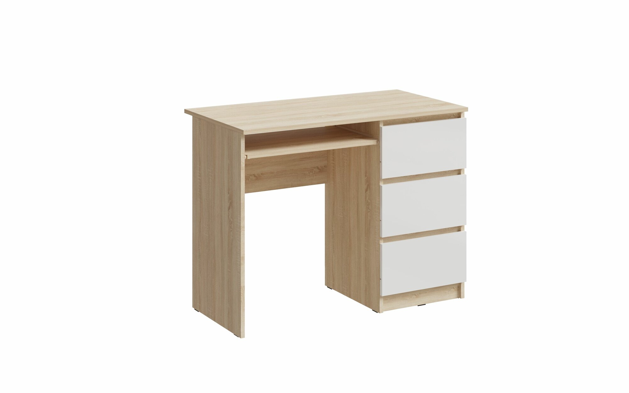 Купить Стол письменный «Челси» 3 выдвижных ящика (Дуб сонома/Белый глянец холодный) с доставкой по всей России.
