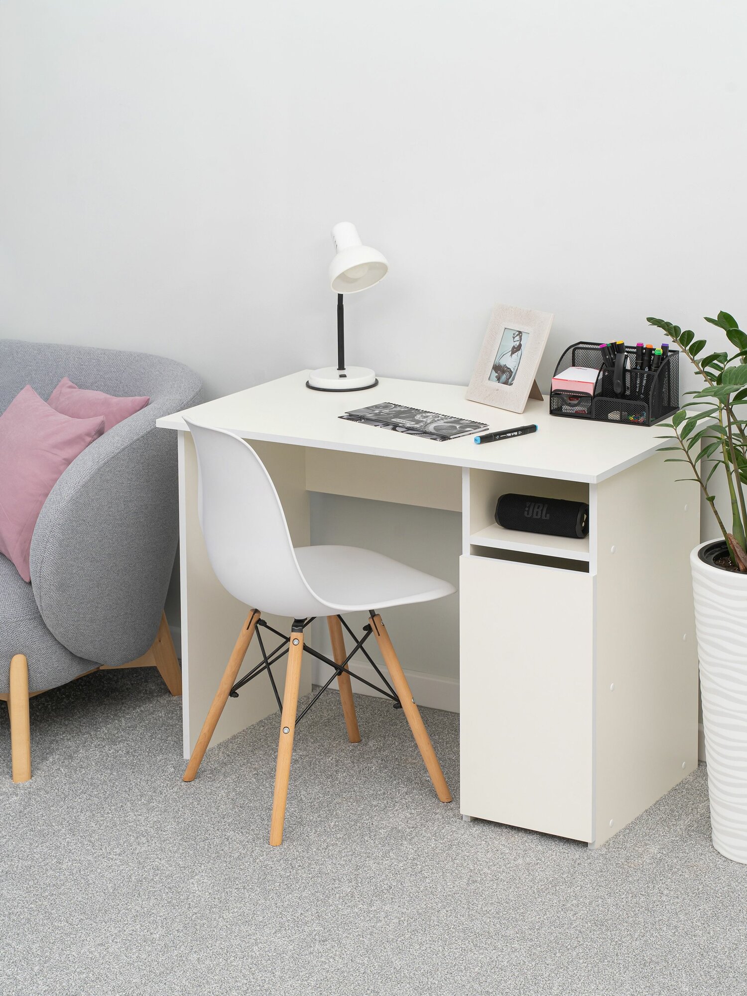 Стол письменный, для школьника, белый, 99х54х75 см, MiKante с полкой и дверцей: сравнение цен, характеристики, фото, актуальное наличие и цены.