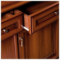 Письменный стол - основа любого кабинета и главная его составляющая. Вместительный двухтумбовый письменный стол оборудован множеством выдвижных ящиков, которые позволят вам держать в полном порядке всю необходимую документацию. Легкое лаковое покрытие выгодно подчеркивает насыщенный ореховый цвет мебели. Качественная и красивая фурнитура цвета античной бронзы гармонично дополняет внешний вид мебели.