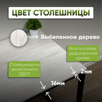 Столешница выполнена из качественного полнотелого ЛДСП толщиной 16 мм. боковые стороны облицованы качественной кромкой ПВХ толщиной 2 мм. Столешница не маркая, легко удаляются такие загрязнения как апельсиновый и свекольный соки, шариковая ручка и даже фломастер.
