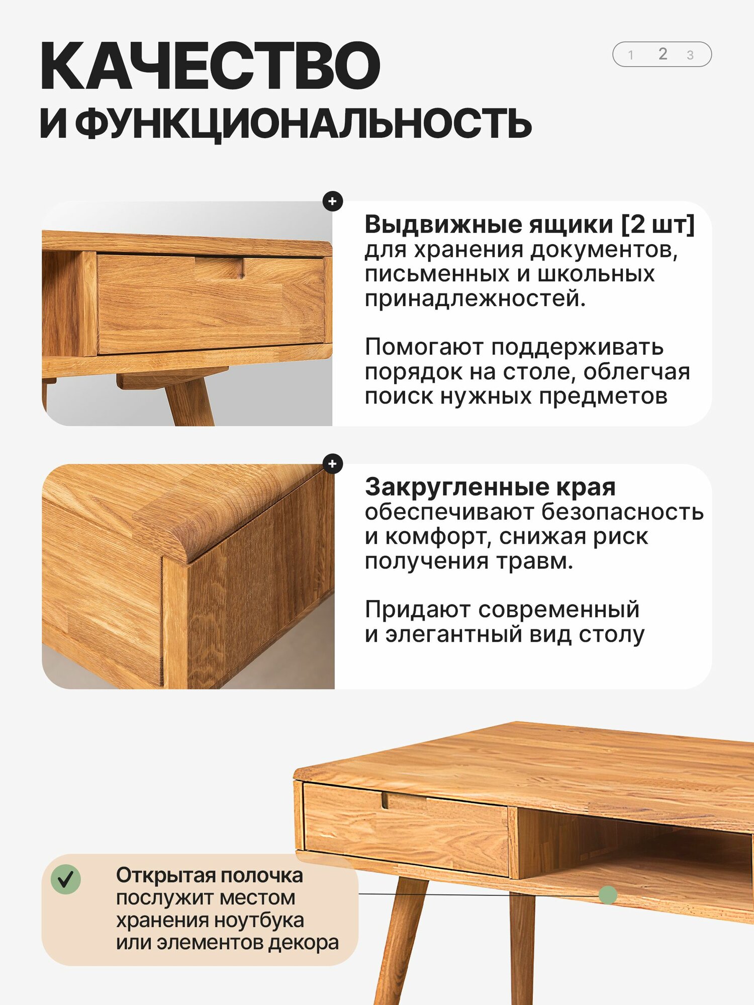 Стол письменный "Ирвинг" (2 ящика), бейц-масло. Стол письменный "Ирвинг" с двумя ящиками, из массива дуба, в стиле Лофт для квартиры и загородного дома. Мебель из массива дерева необыкновенно красива, добротна и славится своим долголетием. Компьютерный стол с ящиками - это лаконичный дизайн и функциональность в одном изделии. Его можно поставить в гостиной или кабинете, зонировать рабочую зону небольшой квартиры или приобрести этот письменный стол для школьника при оформлении детской комнаты, подойдет для мальчика или девочки, для подростка, для работы на удаленке. Лаконичный дизайн, минимализм и стиль одновременно. Отлично впишется в любой интерьер. Выбор мебели для квартиры или дома - это важный этап, ведь мебель премиального качества прослужит вам долгий срок. При выборе мебели ориентируйтесь на стиль пространства. Данный стол для компьютера отлично подойдет для комнаты в современном стиле лофт. Деревянный письменный стол порадует вас качественным исполнением и великолепной текстурой натурального дерева. Белфан - качественная белорусская мебель из дерева. Каждое изделие произведено на собственном производстве, что помогает нам держать качество на самом высоком уровне. Уверены, вам понравится мебель нашего производства!