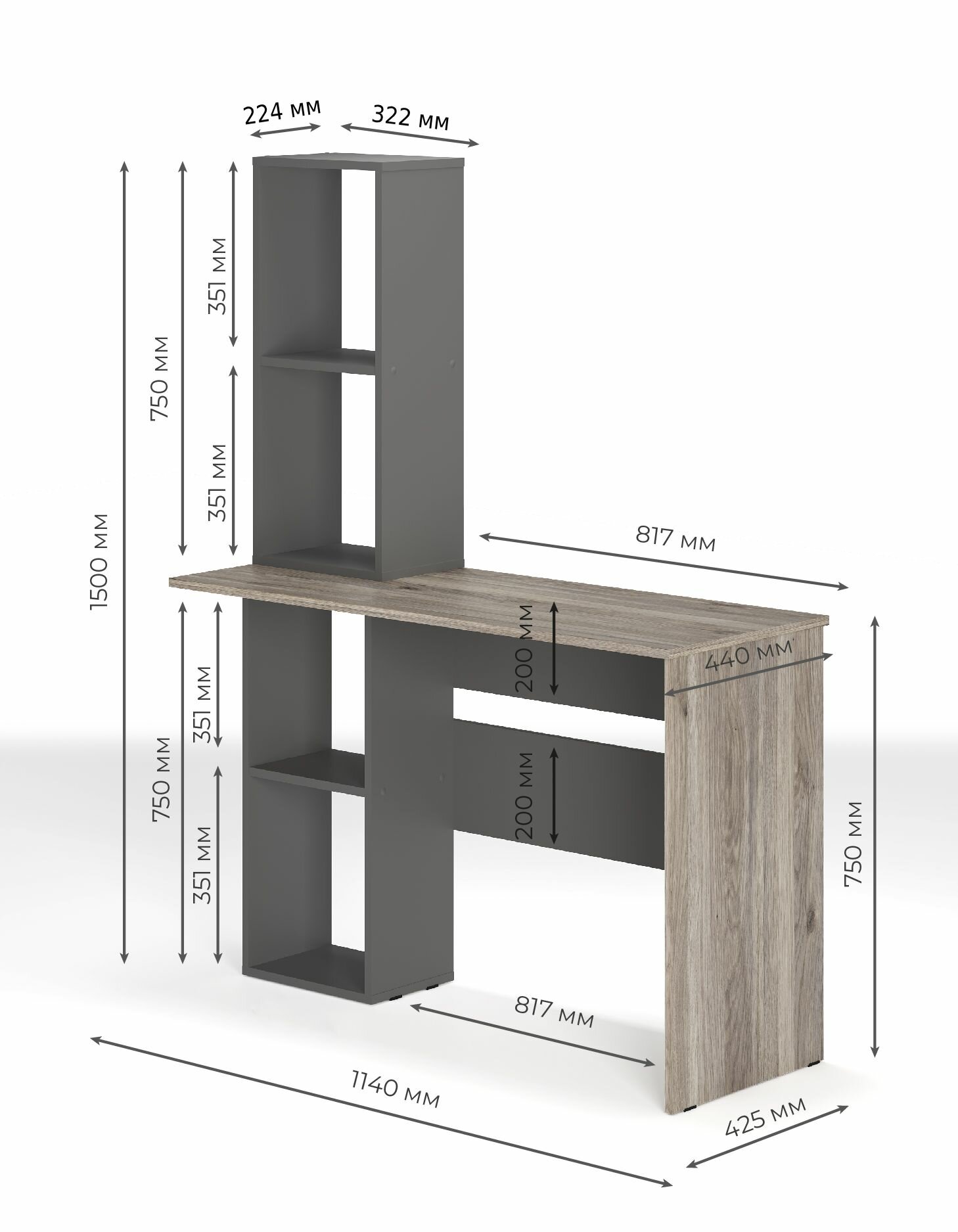 Стол письменный компьютерный Арчи - это сочетание функциональности и стиля. Он предназначен для школьников, но также может быть использован в домашних условиях, в офисе или на даче. Стол выполнен из качественного ЛДСП, что обеспечивает его долговечность и надежность. Материал столешницы и основания - ЛДСП, что гарантирует прочность и устойчивость к повреждениям. Стол оснащен двумя ножками, что придает ему дополнительную устойчивость и позволяет равномерно распределить нагрузку до 30 кг. Стол имеет 4 полки, что позволяет хранить книги, учебники, тетради и другие необходимые предметы. Стол письменный компьютерный Арчи имеет классический и минималистичный дизайн, который подойдет к любому интерьеру. Цвет "Графит/дуб смоки" от производителя придает столу элегантность и современность. Габариты стола составляют 114 см в ширину и 42,5 см в глубину, а высота - 150 см. Это позволяет разместить его даже в небольших помещениях. В комплект входят фурнитура и инструкция по сборке, что делает процесс установки стола простым и быстрым. Выбирая стол письменный компьютерный Арчи, вы получаете качественный, стильный и функциональный предмет мебели, который прослужит вам долгие годы.
