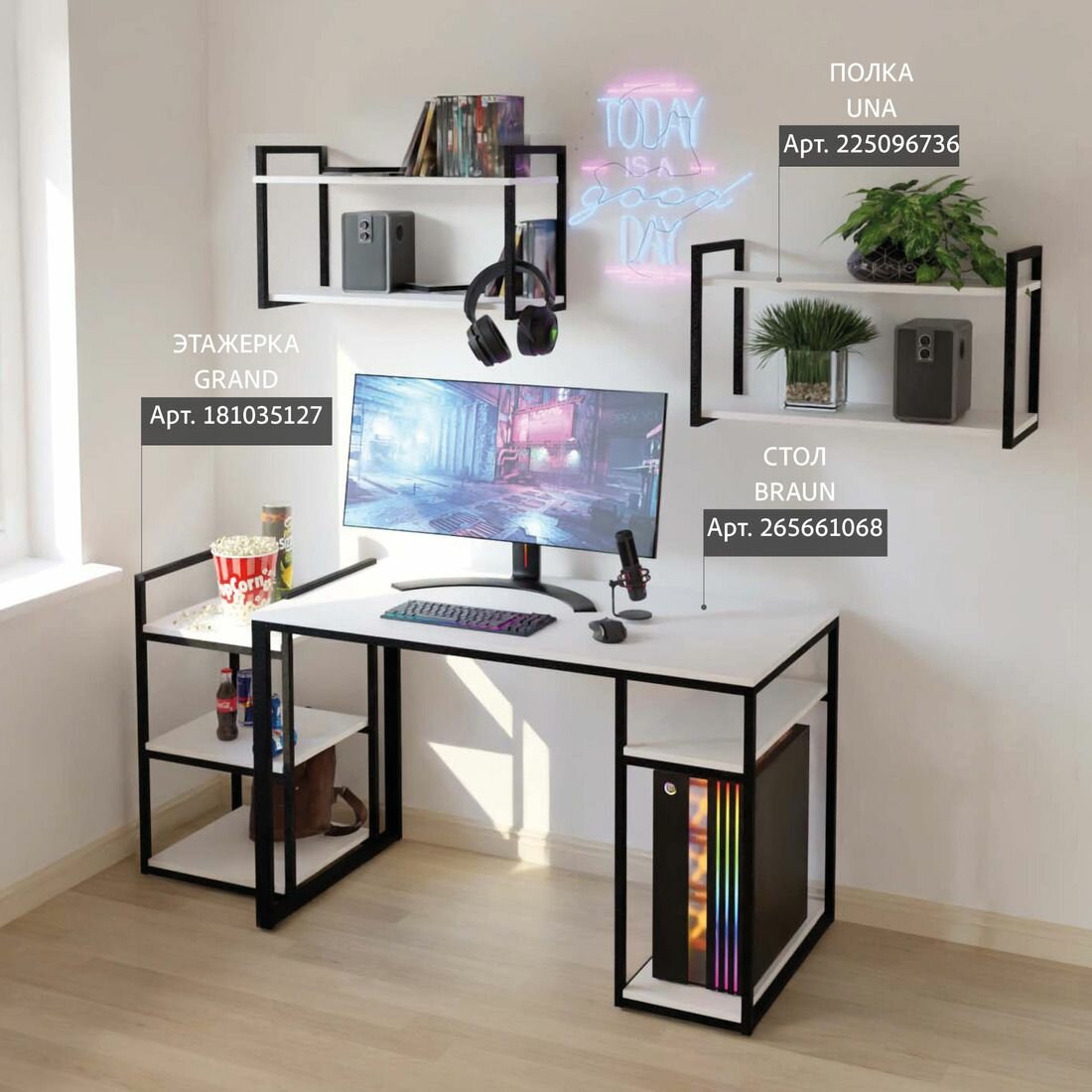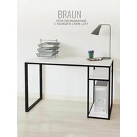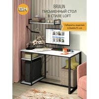 Стол письменный компьютерный игровой, белый, BRAUN loft, с полкой, 120x60x75 см, гростат: сравнение цен, характеристики, фото, актуальное наличие и цены.