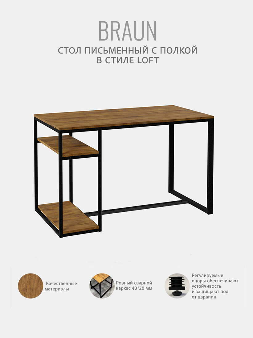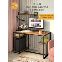 Стол письменный компьютерный игровой, коричневый, BRAUN loft, с полкой, 120x60x75 см, гростат: сравнение цен, характеристики, фото, актуальное наличие и цены.