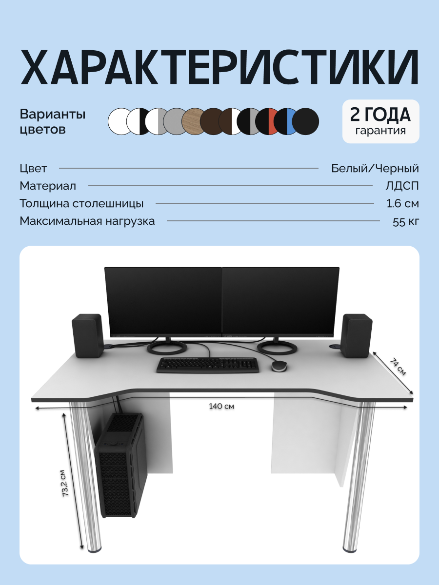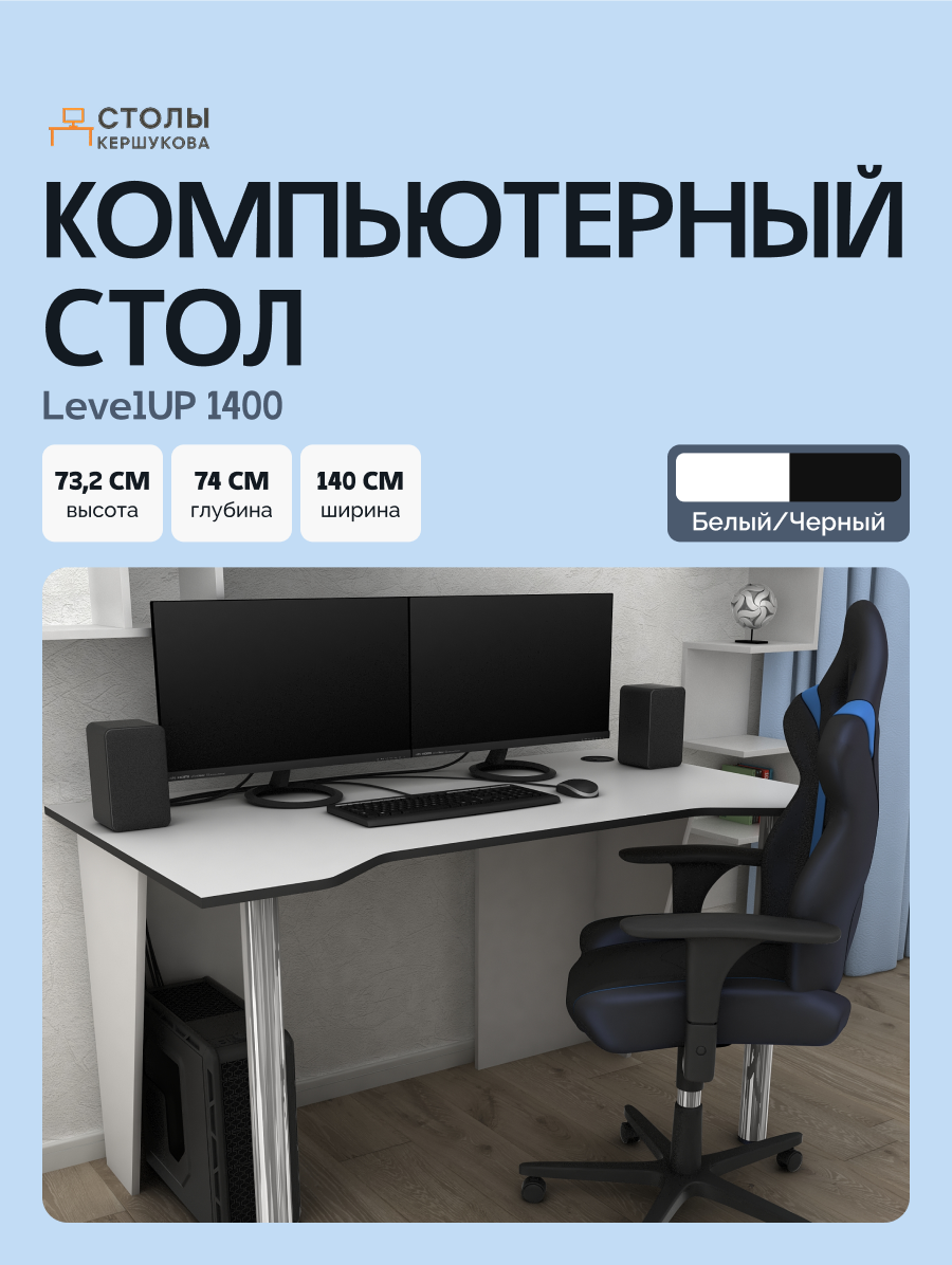 Стол компьютерный, письменный, игровой LevelUP 1400 Белый/Черный, 140*74 см.: сравнение цен, характеристики, фото, актуальное наличие и цены.