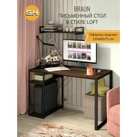 Стол письменный компьютерный игровой, темно-коричневый, BRAUN loft, с полкой, 120x60x75 см, гростат: сравнение цен, характеристики, фото, актуальное наличие и цены.