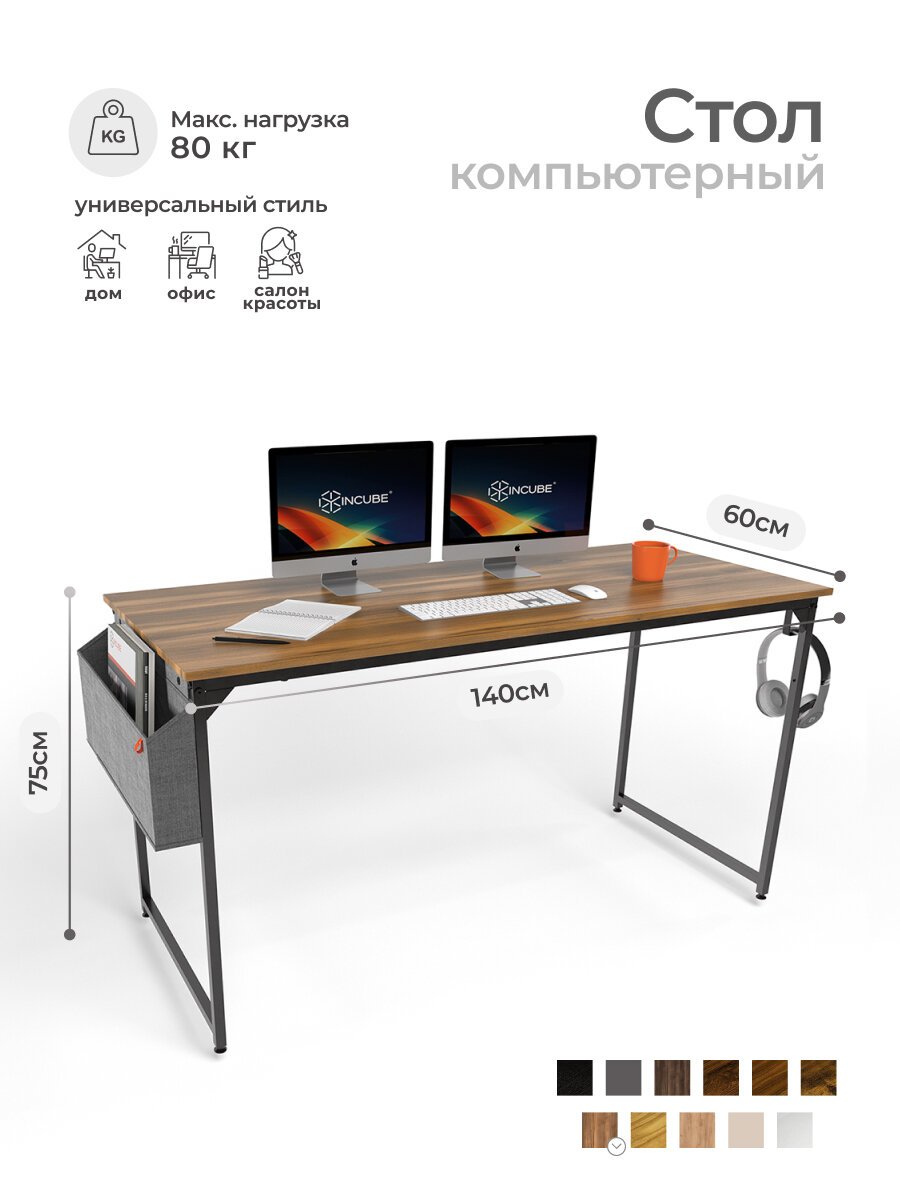 Стол письменный, компьютерный лофт INCUBE D002.140. AMK, дуб янтарный, 140х60х75см, с органайзером, ЛДСП, металл: сравнение цен, характеристики, фото, актуальное наличие и цены.