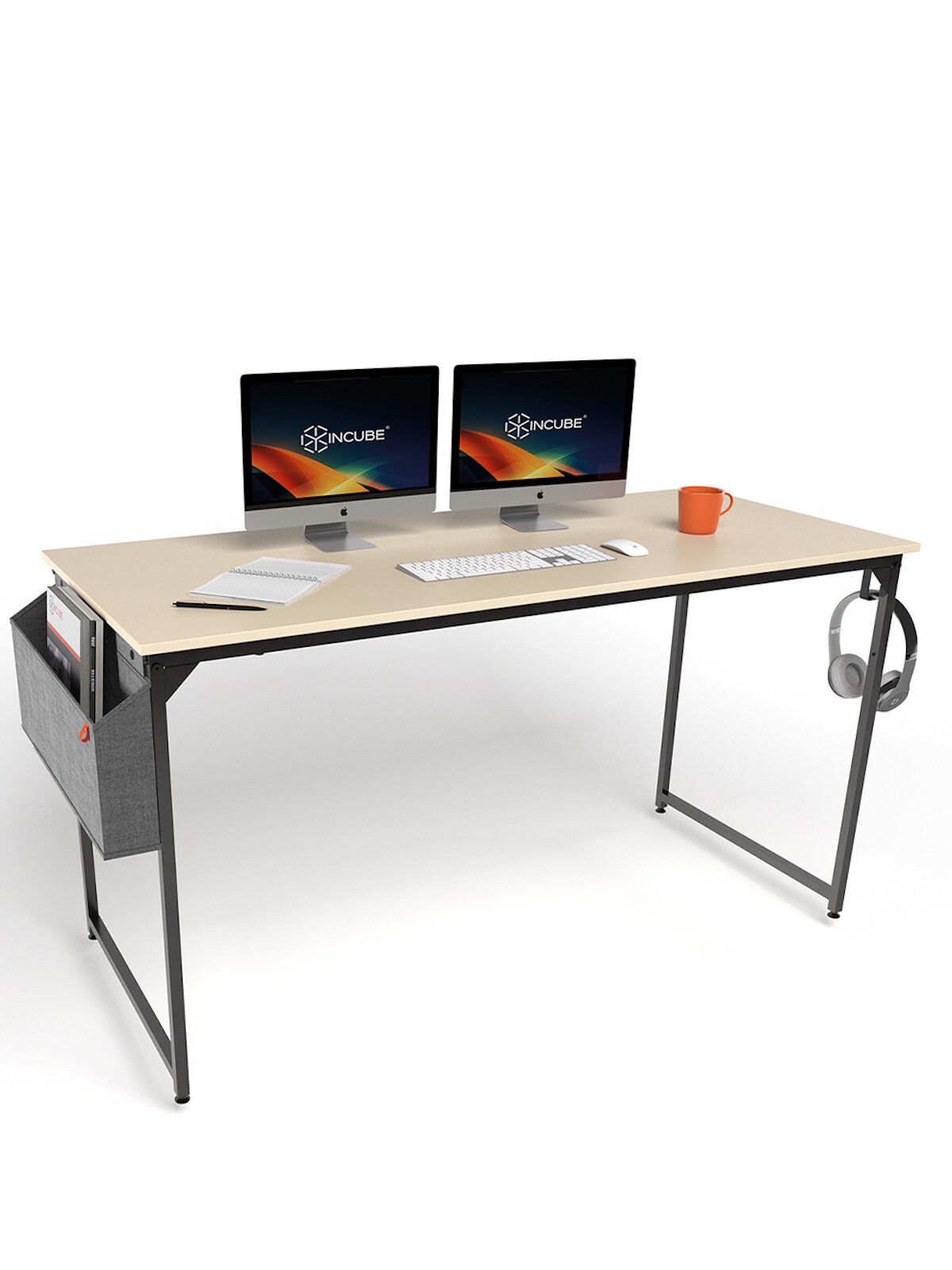 Стол письменный, компьютерный лофт INCUBE D002.140. CAP, капучино, 140х60х75см, с органайзером, ЛДСП, металл