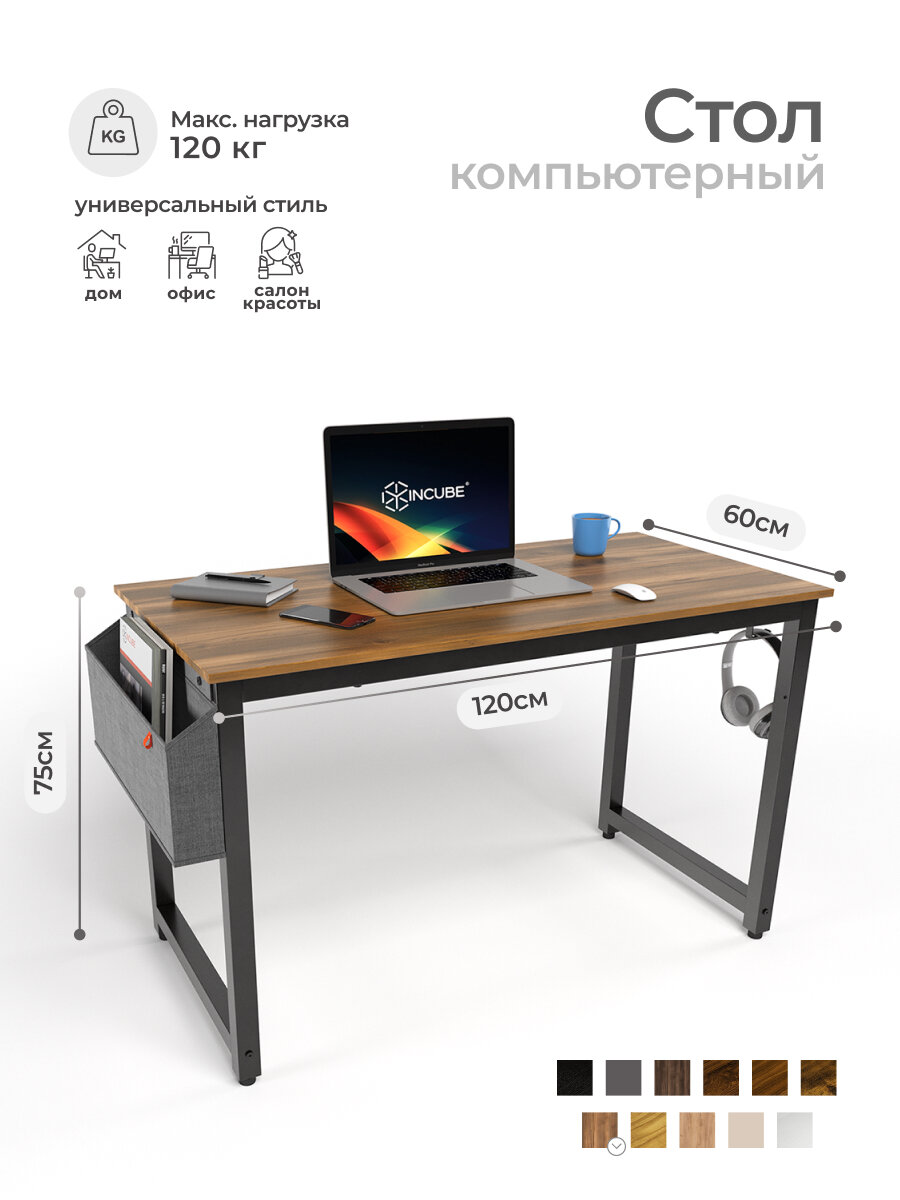 Стол письменный, компьютерный лофт INCUBE D004.120. AMK, дуб янтарный, 120х60х75см, с органайзером, ЛДСП, металл: сравнение цен, характеристики, фото, актуальное наличие и цены.