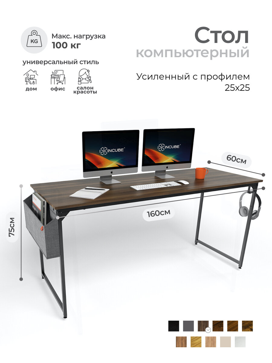 Идеальное решение для вашего рабочего пространства Стол письменный и компьютерный Incube D002.160. BAO – стильное и функциональное дополнение к вашему дому или офису. Он сочетает в себе современный дизайн, удобство и высокое качество материалов, что делает его отличным выбором для работы, учёбы и творчества. Преимущества: -Прочные материалы: Столешница из высококачественного ЛДСП с покрытием, устойчивым к царапинам и влаге, обеспечивает долговечность и простой уход. -Надёжная конструкция: Усиленный Каркас из металла гарантирует устойчивость и выдерживает нагрузку до 120 кг. -Эргономика и комфорт: Регулируемая высота позволяет адаптировать стол под ваши потребности, снижая нагрузку на спину и обеспечивая удобство при длительной работе. -Практичное хранение: Встроенный ящик идеально подходит для хранения канцелярии и аксессуаров, поддерживая порядок на рабочем месте. -Современный дизайн: Лаконичные линии и универсальный коричневый цвет гармонично впишутся в любой интерьер, будь то современный офис или уютная домашняя рабочая зона. Основные характеристики: -Размеры: 160x60x75 см (регулируемая высота). -Материалы: ЛДСП и металл. -Цвет: Дуб Барокко. -Максимальная нагрузка: До 120 кг. -Функциональные элементы: Ящик для хранения, органайзер для проводов, держатели для наушников. -Лёгкая сборка: Поставляется с инструкцией и необходимыми инструментами для быстрой установки. Этот стол станет отличным выбором для дома, офиса или учебного кабинета. Его минималистичный стиль и удобные функции подойдут как для взрослых, так и для подростков. Покупайте прямо сейчас и создайте идеальное рабочее пространство с Incube!