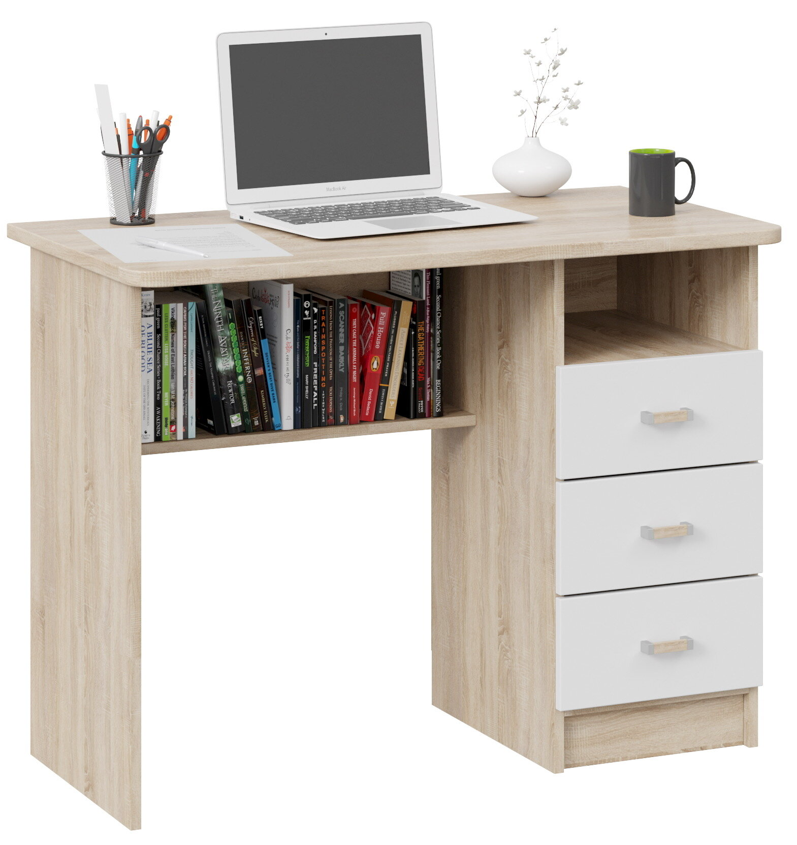 Стол письменный компьютерный мастер-мебель, ЛДСП, 102x53x76 см, с ящиками, цвет дуб сонома/белый: сравнение цен, характеристики, фото, актуальное наличие и цены.