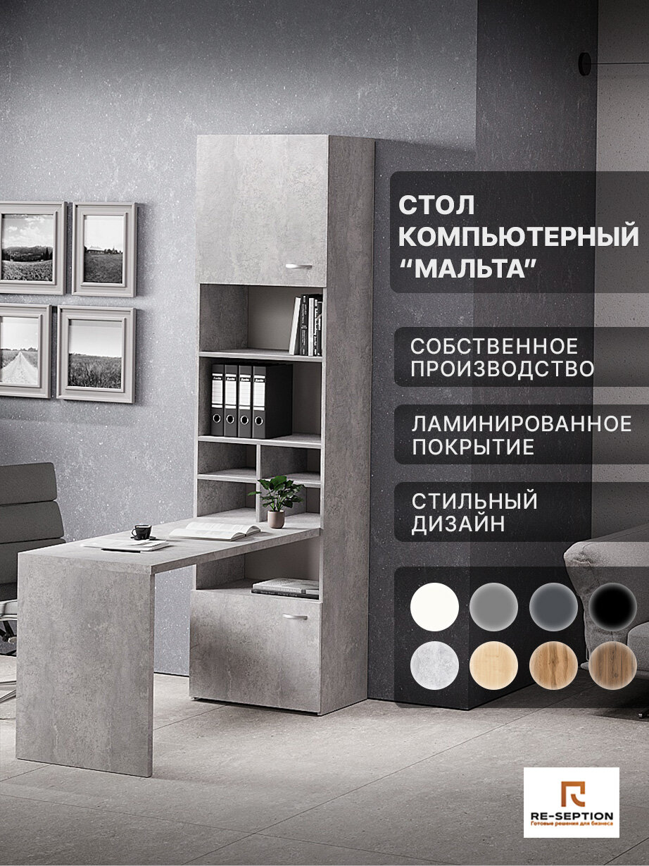 Купить Стол письменный компьютерный рабочий «Мальта» со стеллажом, с полками, со шкафчиками, Цемент светлый, 160х230х64 с доставкой по всей России. Стол письменный компьютерный рабочий «Мальта» со стеллажом, с полками, со шкафчиками, Цемент светлый, 160х230х64: сравнение цен, характеристики, фото, актуальное наличие и цены.