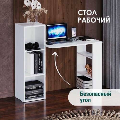 Стол письменный с полками - это универсальное решение для вашего рабочего пространства. Он предназначен для использования как компьютерный стол и может также служить в качестве туалетного столика. Этот стол имеет стильный дизайн и выполнен в белом цвете, что придает ему элегантный и современный вид. Он легко впишется в любой интерьер и станет прекрасным дополнением к вашему рабочему пространству или ванной комнате. Стол оснащен полками, которые предоставляют дополнительное пространство для хранения и организации ваших вещей. Вы сможете разместить на полках книги, документы, аксессуары или другие необходимые предметы, чтобы всегда иметь их под рукой. Кроме того, стол обладает прочной конструкцией и изготовлен из качественных материалов, что гарантирует его долговечность и надежность. Особое внимание уделено безопасности использования - стол имеет закругленный угол, что делает его безопасным для использования, особенно в присутствии детей.