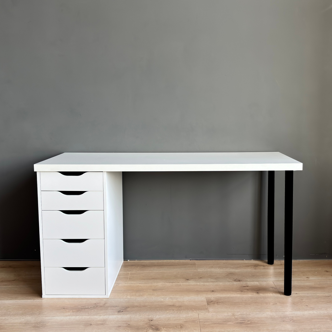 Стол письменный скива с тумбой 5 ящиков, 140х60х73,7 см, белый/черный