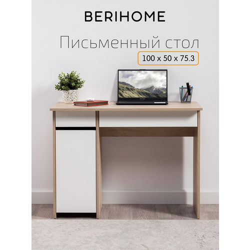 Стол имеет размер 100х50х75.3 см, что позволяет его использовать как компактное, но вместительное рабочее пространство. Этот стол отлично подойдет как для работы, так и для учебы. Он оснащен выдвижными ящиками и тумбой, где можно удобно хранить документы, канцелярские принадлежности и другие важные мелочи. Благодаря своей универсальности и продуманной конструкции, стол может использоваться как письменный стол для школьника, рабочий стол для ноутбука или как офисный стол.