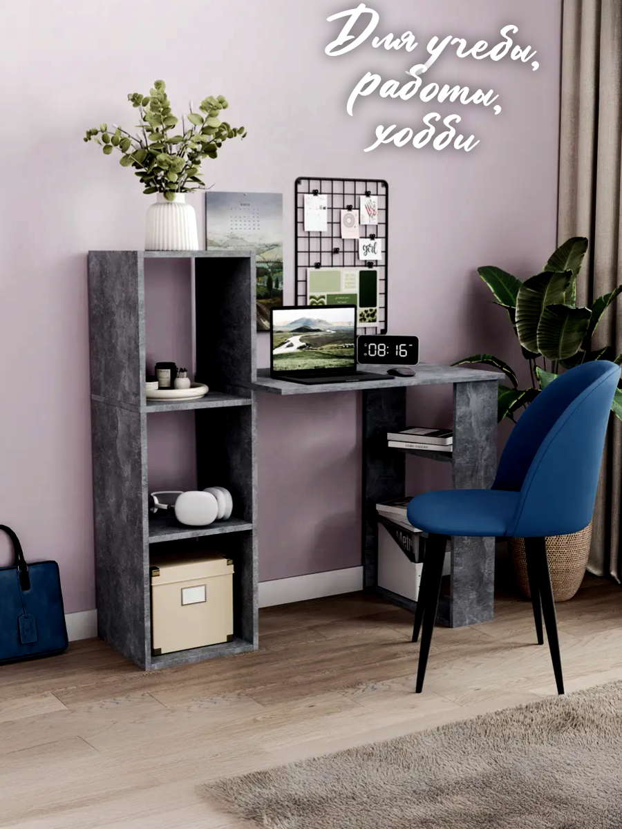 Купить Стол письменный компьютерный универсальный с полками, цвет цемент темный, ширина 113 см с доставкой по всей России.