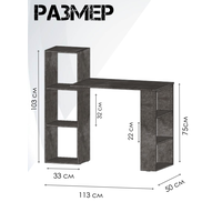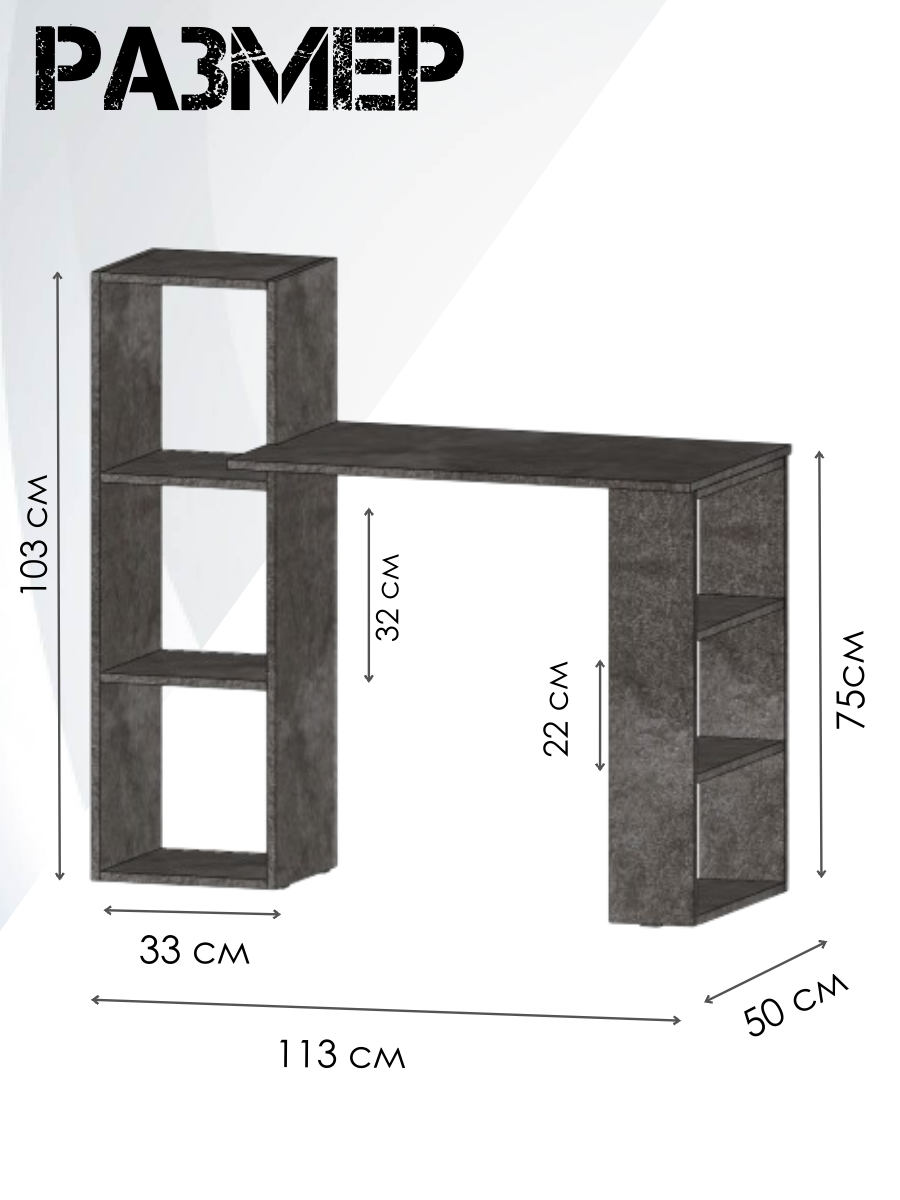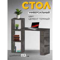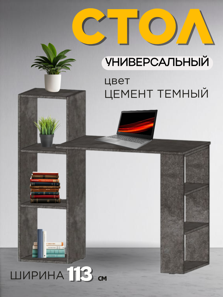 Стол письменный компьютерный универсальный с полками, цвет цемент темный, ширина 113 см: сравнение цен, характеристики, фото, актуальное наличие и цены.
