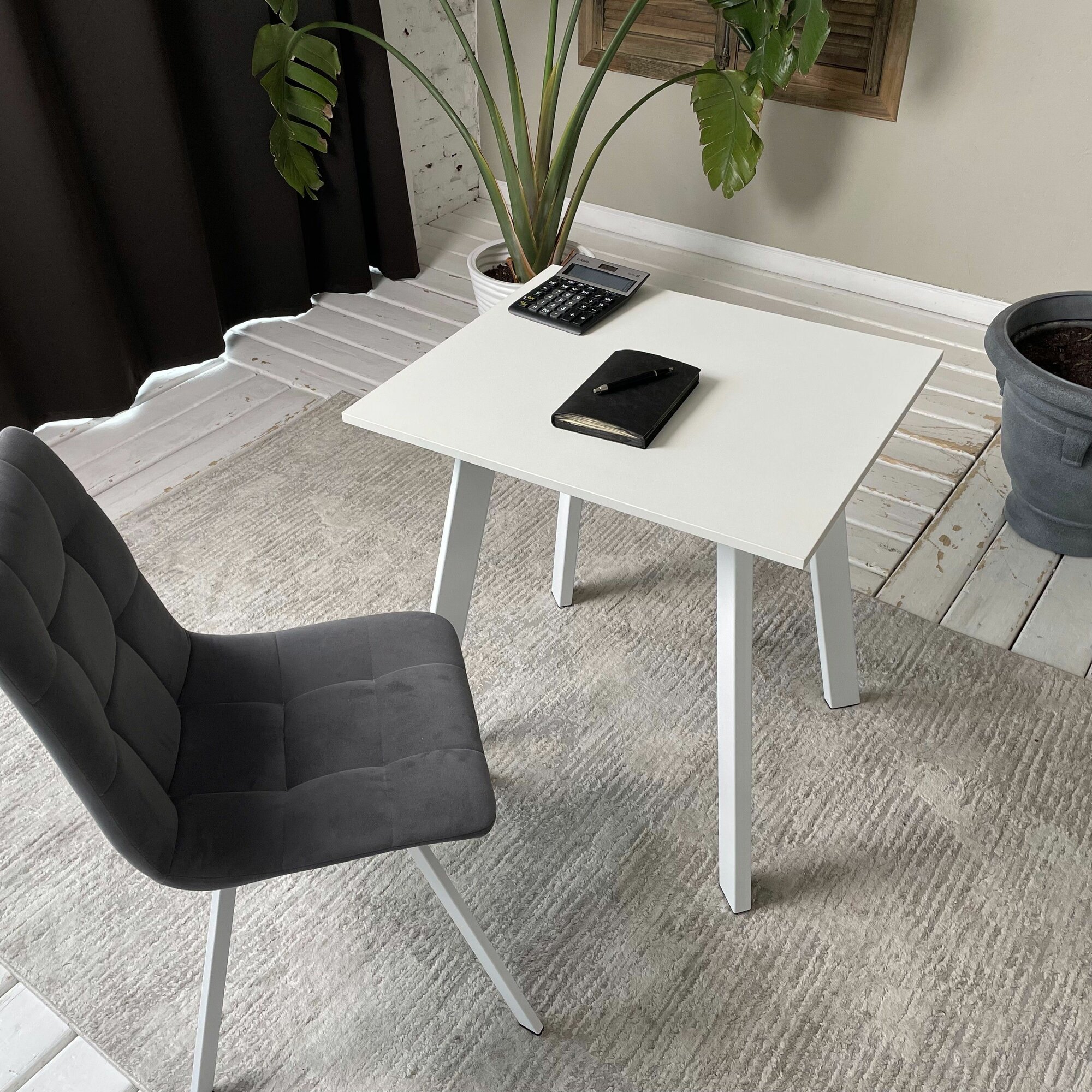 Стол письменный лофт Ник 60 * 50 см. Столешница 22 мм. Белые ножки